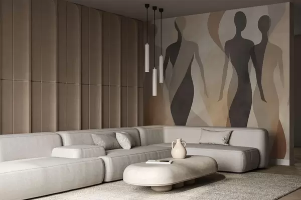 Fototapety Siluety postáv a jemné vlny v teplých béžovo-sivých odtieňoch Nr. w04787