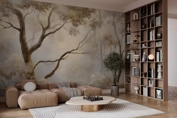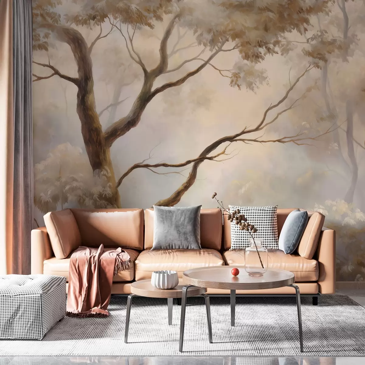 Fototapety Les v ľahkej rannej hmle. Jemný atmosférický obraz v štýle umeleckej krajiny Nr. w04817