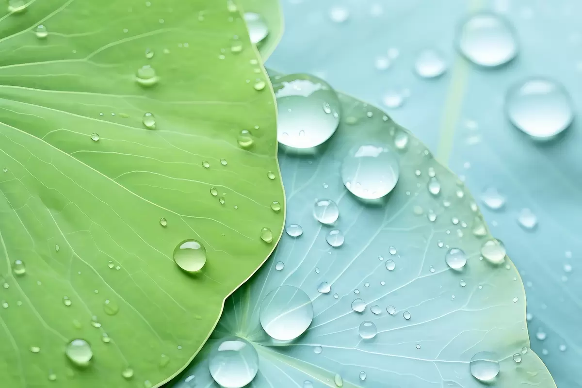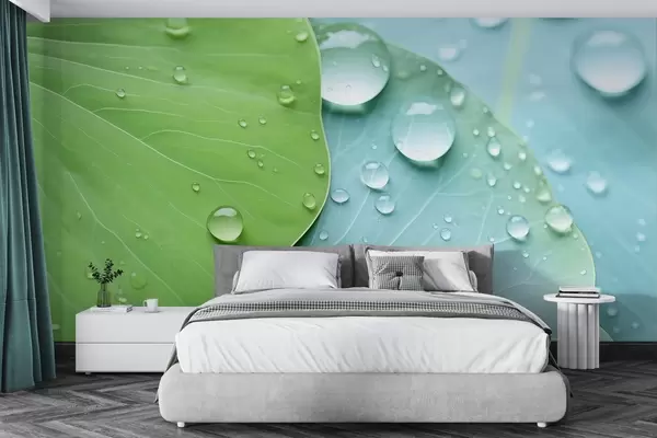 Fototapety Vodné kvapky na listoch makro akvarel Nr. w04838