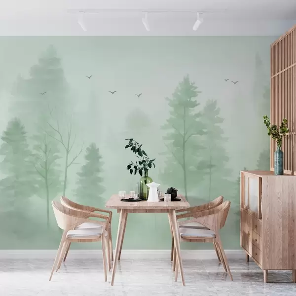 Fototapety les v zelených odtieňoch v štýle akvarelu Nr. w04872v1