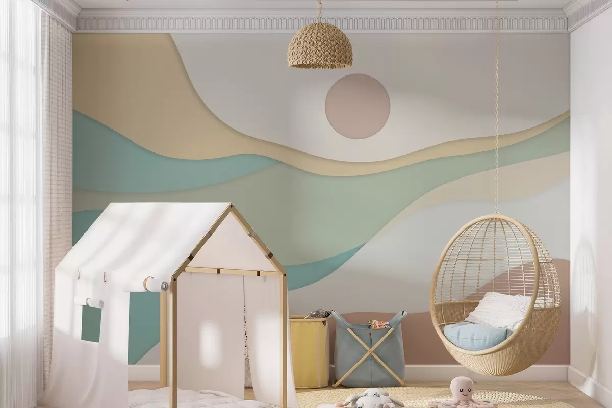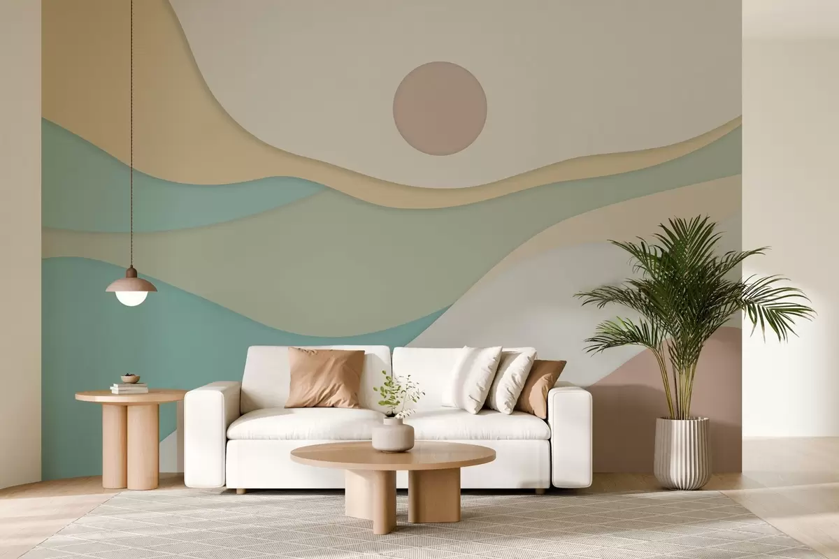 Fototapety Minimalistická abstrakcia s jemnými, vlnovitými tvarmi pripomínajúcimi plynúce krajiny a duny. Nr. w04874