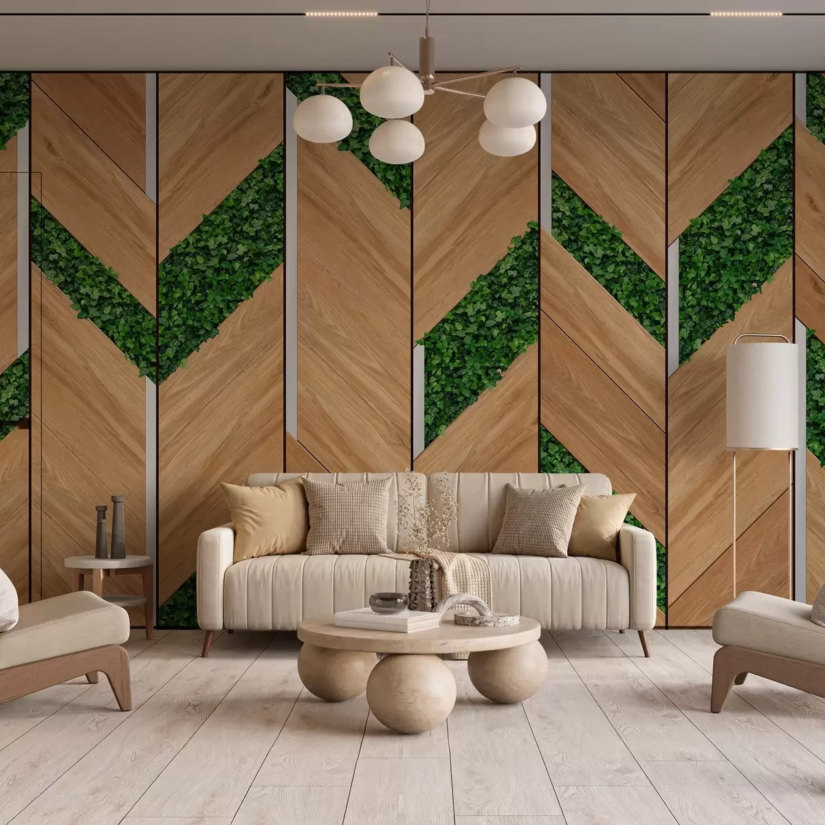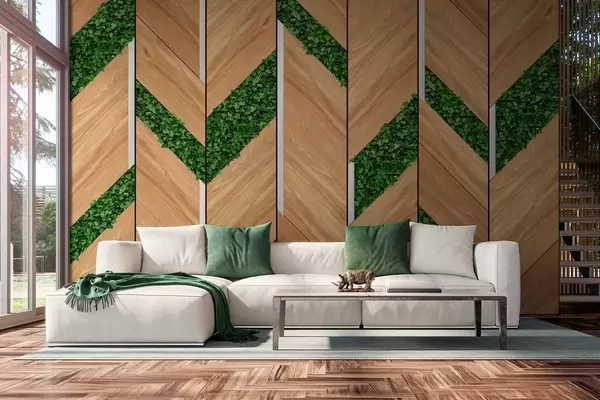 Fototapety imitácia svetlých drevených panelov s rastlinnými vložkami Nr. w04875
