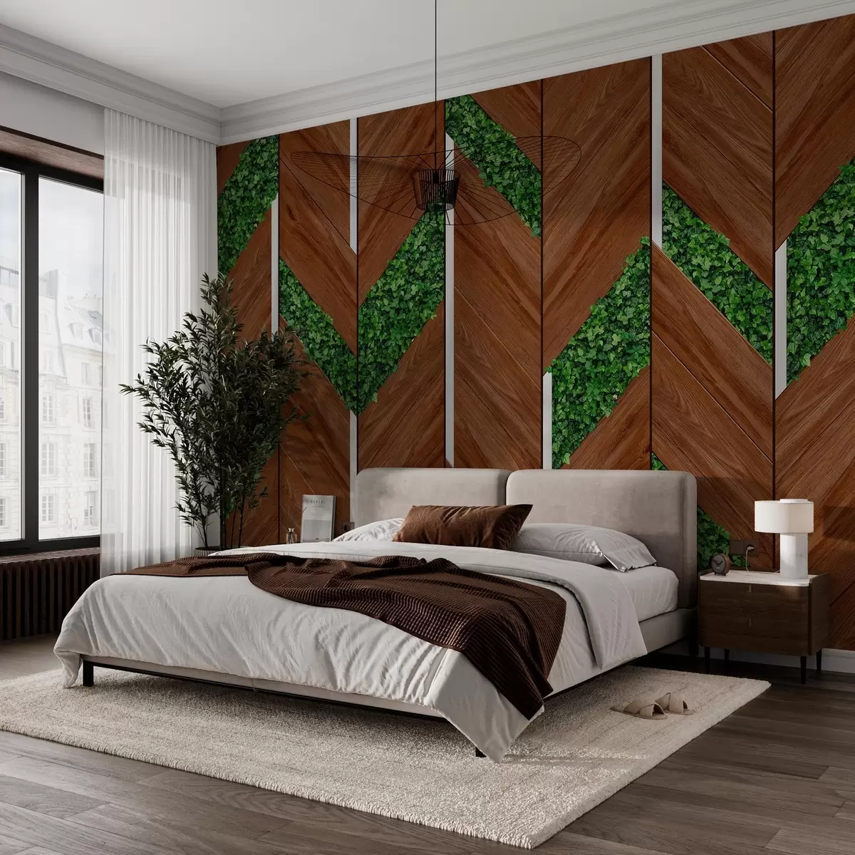 Fototapety imitácia tmavých drevených panelov s rastlinnými vložkami Nr. w04875v1