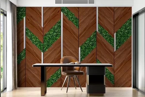 Fototapety imitácia tmavých drevených panelov s rastlinnými vložkami Nr. w04875v1