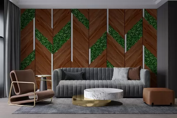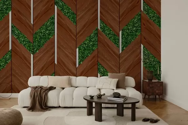 Fototapety imitácia tmavých drevených panelov s rastlinnými vložkami Nr. w04875v1