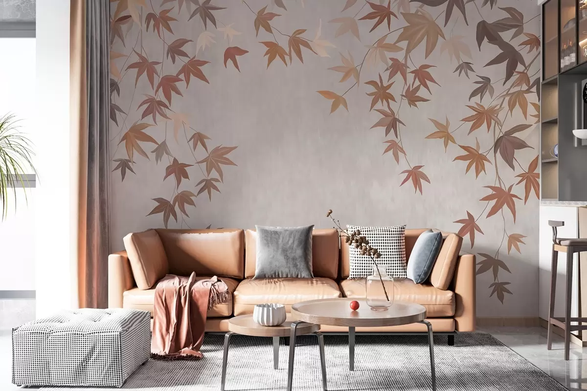 Fototapety pestrobarevné listy brečtanu padajúce zhora v štýle olejomaľby Nr. w04878