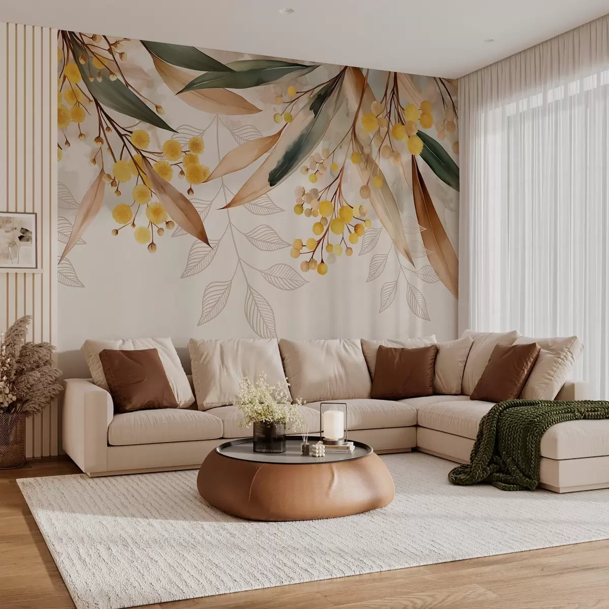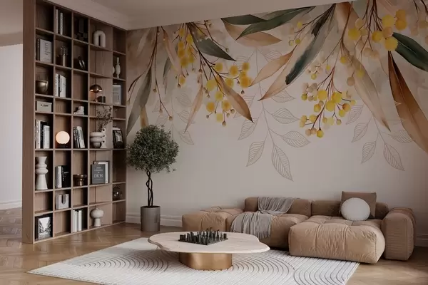 Fototapety kvety a listy mimózy padajúce zhora v akvarelovom štýle Nr. w04880