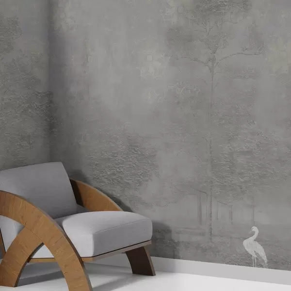 Fototapety Ľahký hmlistý les s volavkou v chladných sivých odtieňoch Nr. w04953v2
