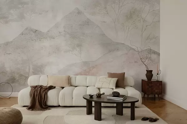 Fototapety Mäkké pastelové hory a stromy v ľahkej hmle Nr. w04954