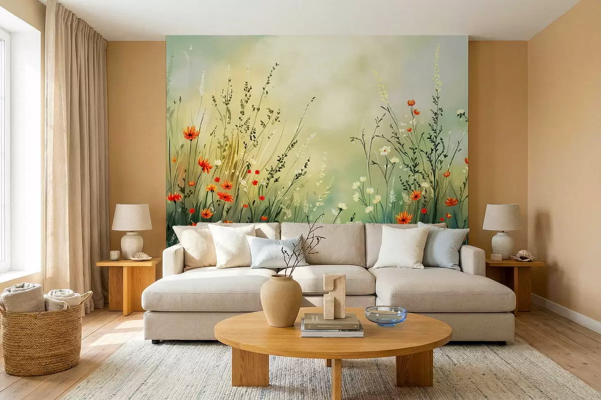 Fototapety Lúčne kvety a trávy v jemnom maliarskom štýle Nr. w05015