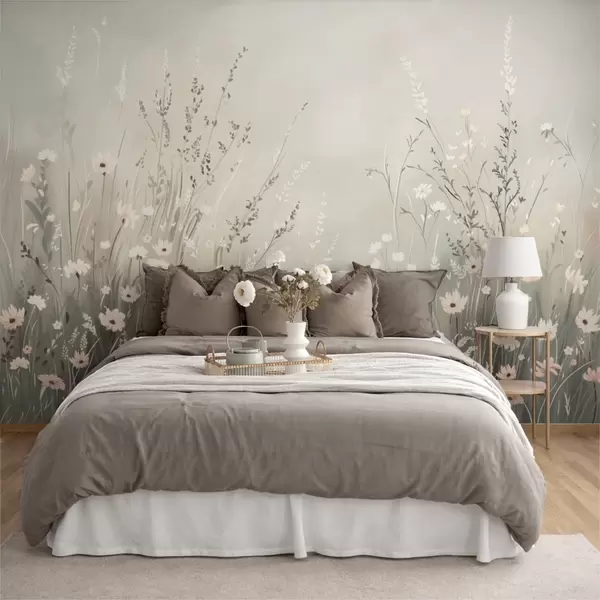 Fototapety Jemná lúka s bielymi kvetmi a jemnými trávami Nr. w05015v1