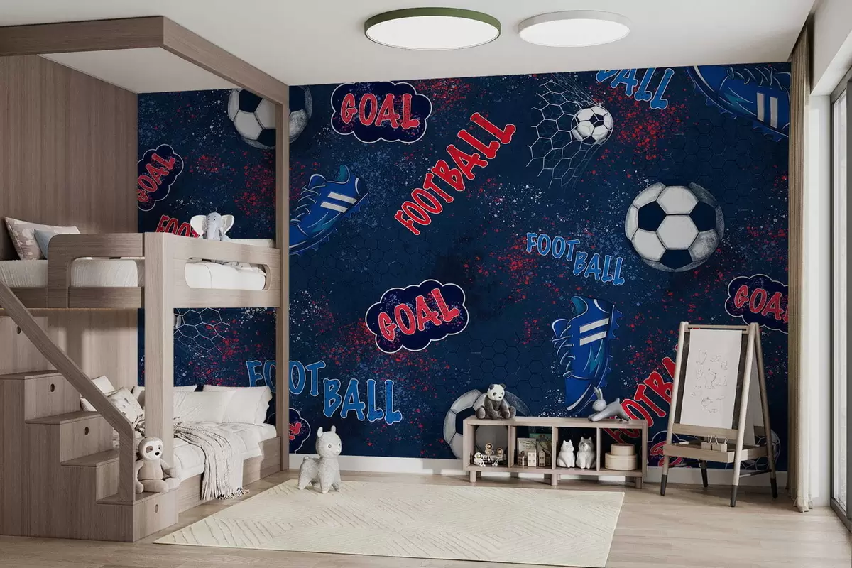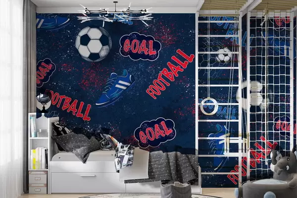 Fototapety Opakujúci sa vzor s loptami, kopačkami a textovými prvkami Nr. w05037v2