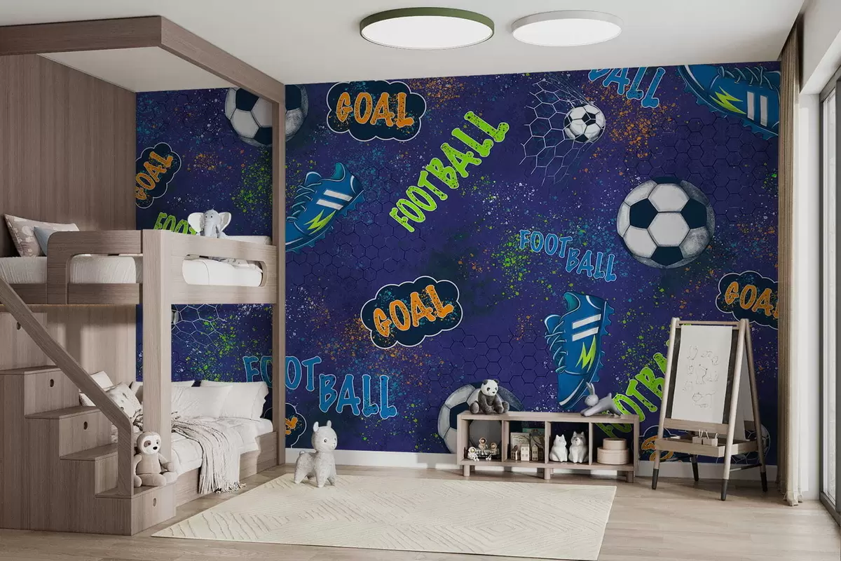 Fototapety Detský futbalový vzor v tmavomodrých odtieňoch Nr. w05037v3