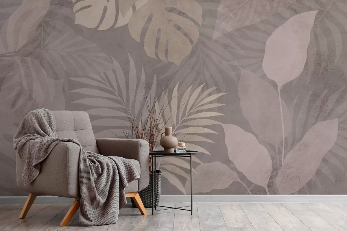 Fototapety textúrované tropické listy na sivom pozadí Nr. w05063v1