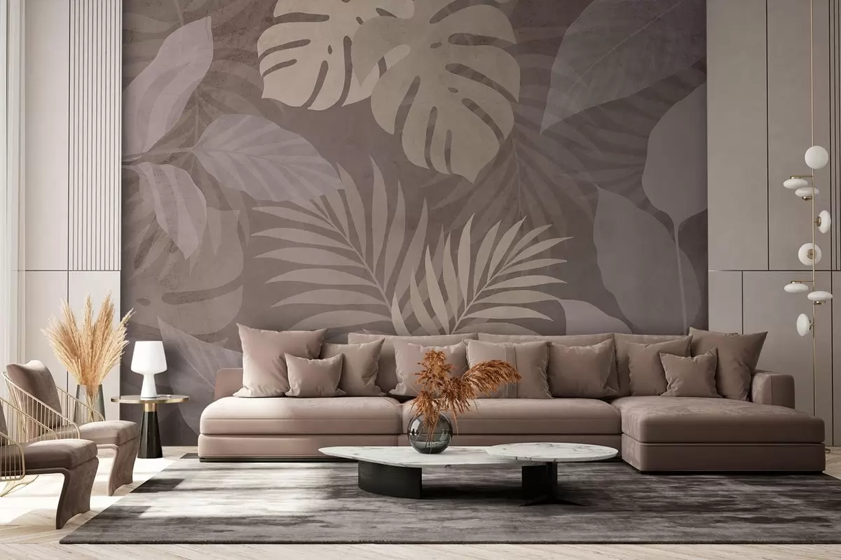 Fototapety textúrované tropické listy na čokoládovom pozadí Nr. w05063v2