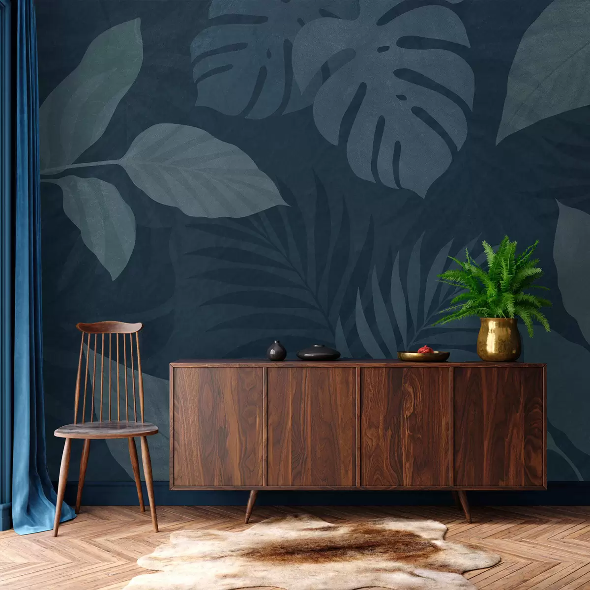 Fototapety textúrované tropické listy na tmavomodrom pozadí Nr. w05063v3