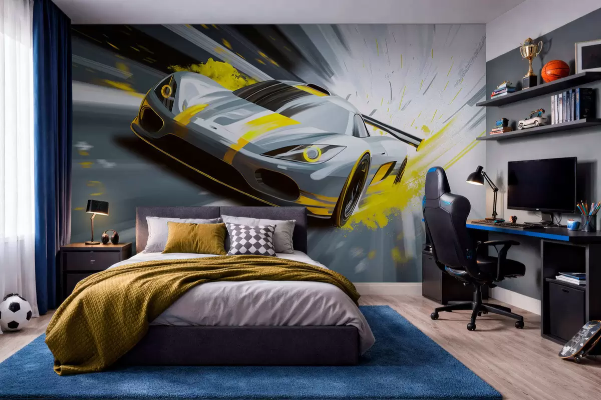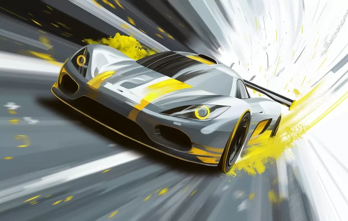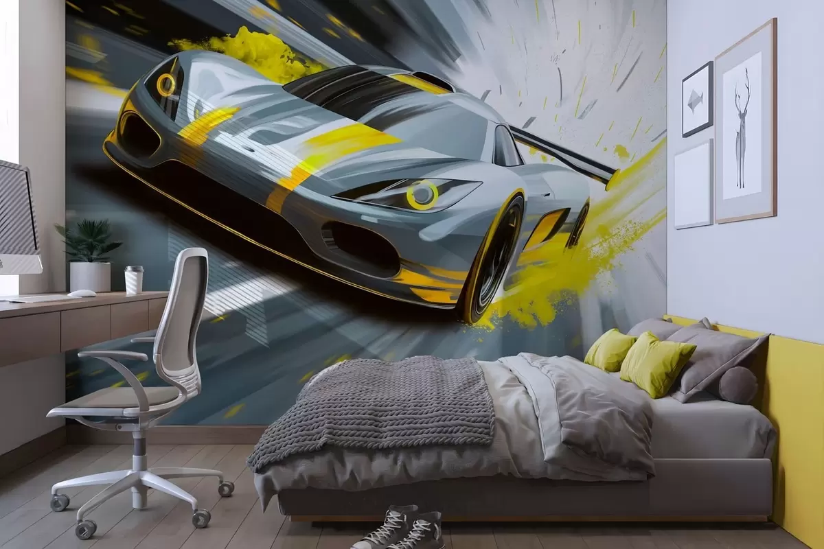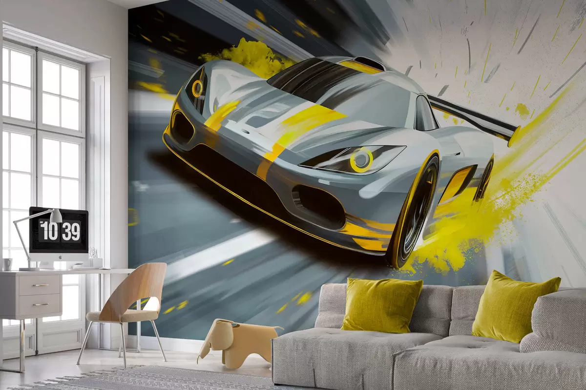 Fototapety dynamické športové auto v digitálnom štýle kresby so žltými akcentmi Nr. w05069v2