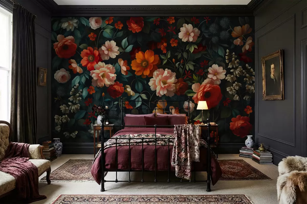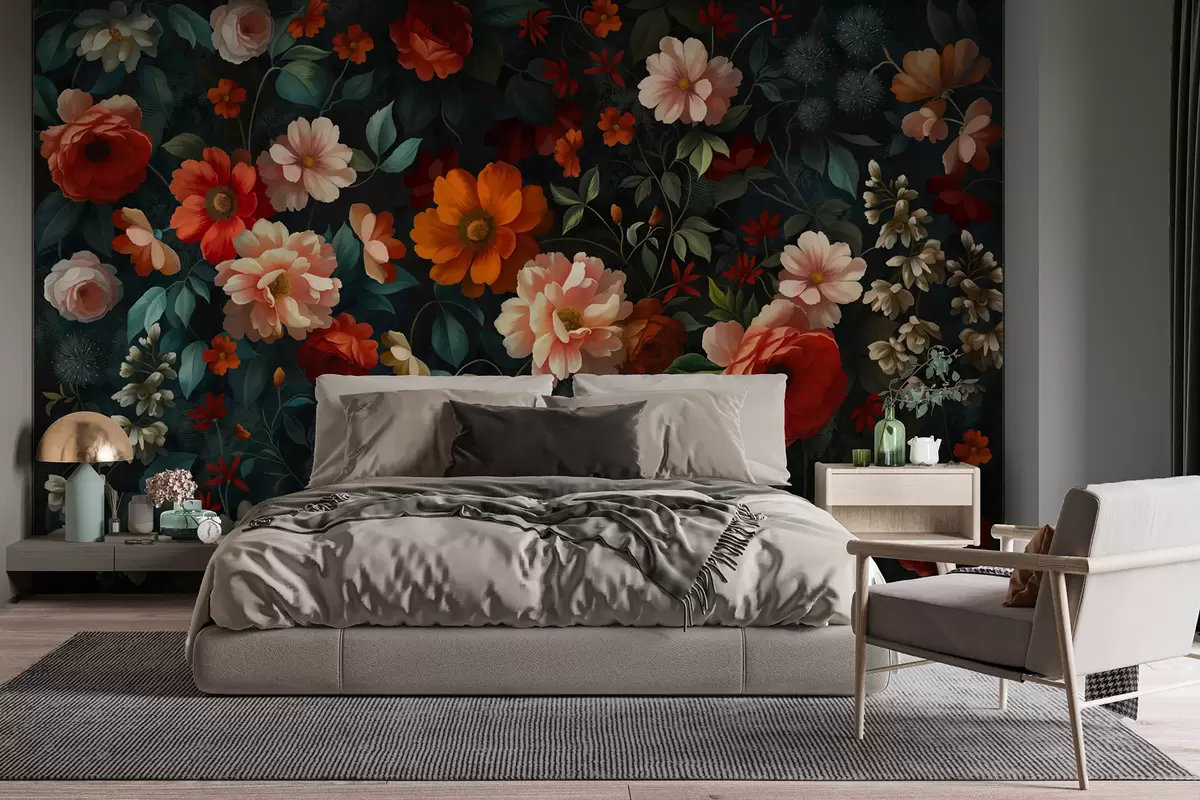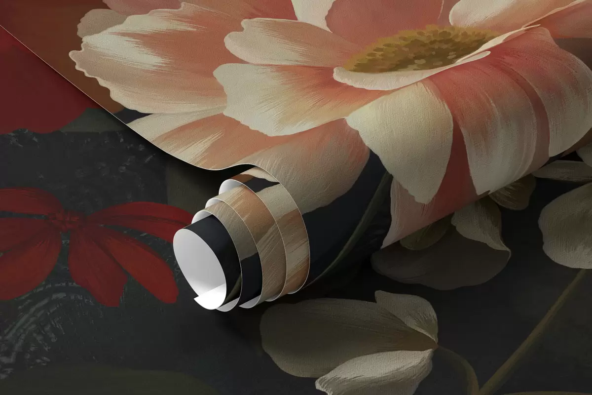 Fototapety Tmavý kvetinový vzor s bujnými záhradnými kvetmi Nr. w05087