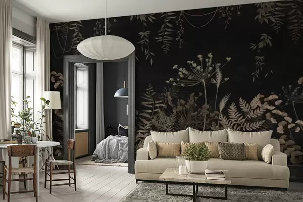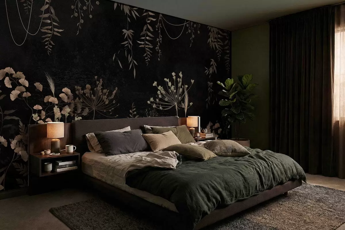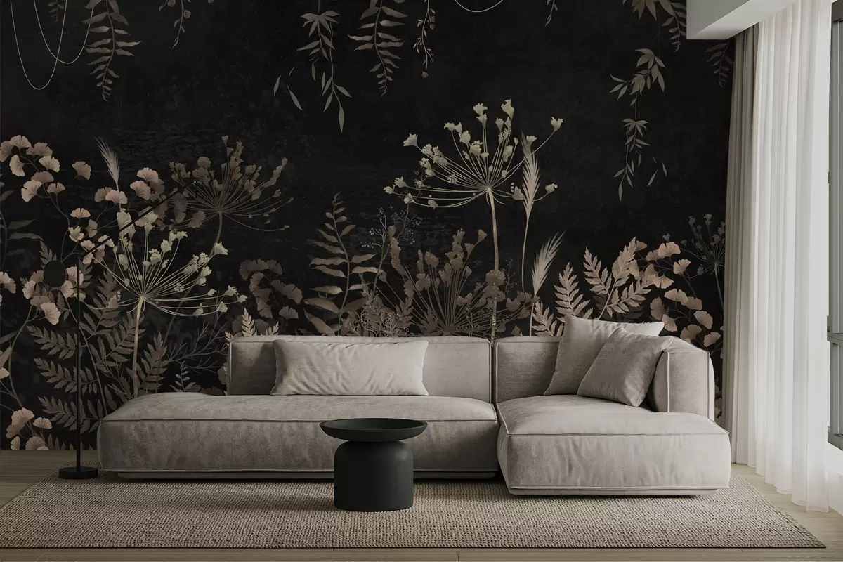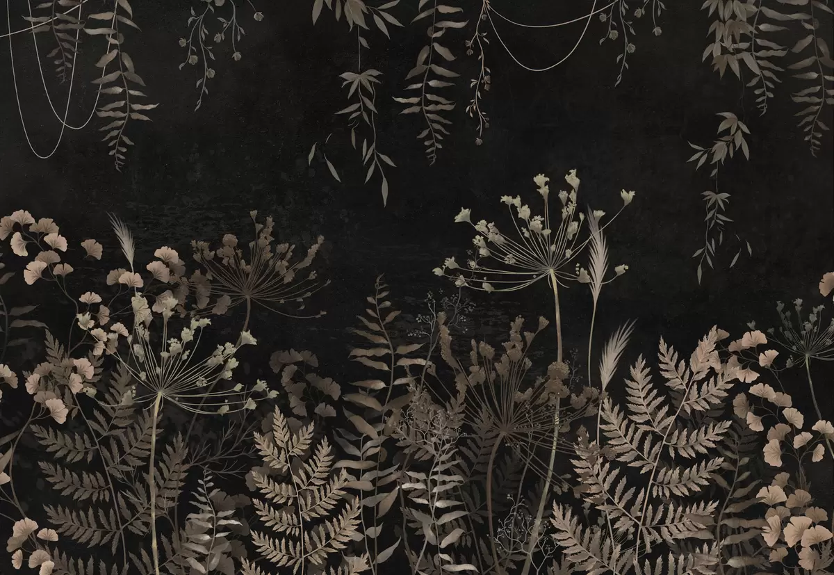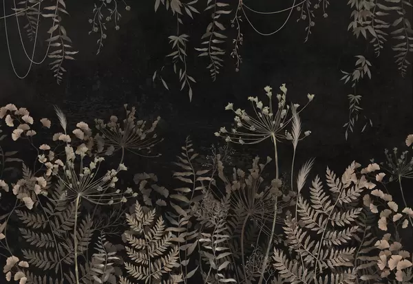 Fototapety Tmavý botanický vzor s kvetmi a listami Nr. w05092