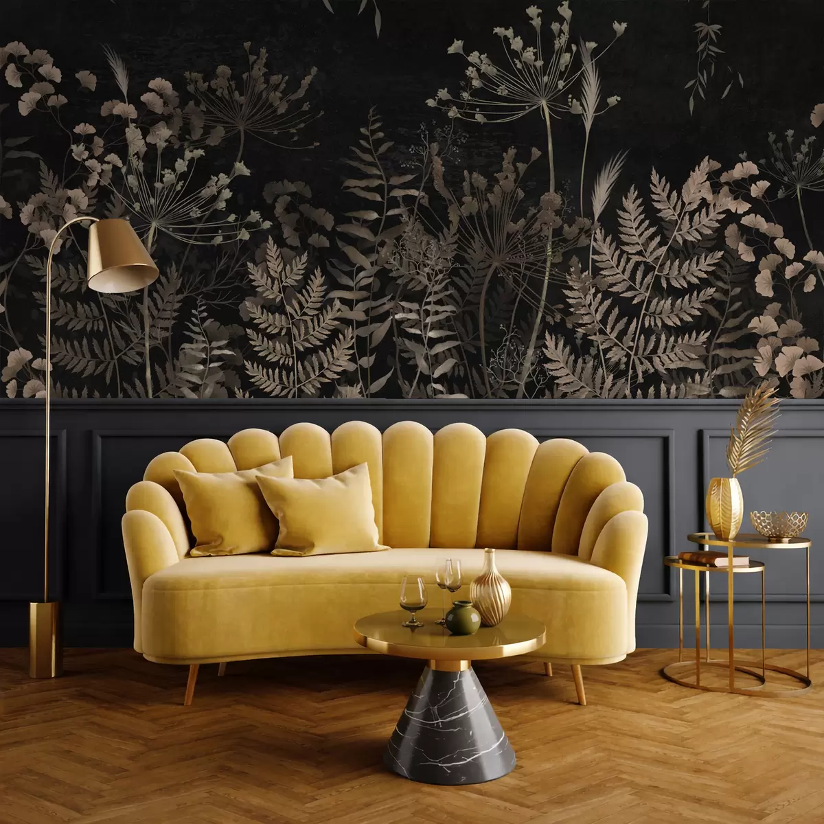 Fototapety Tmavý botanický vzor s kvetmi a listami Nr. w05092
