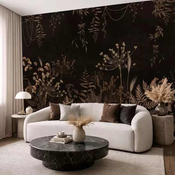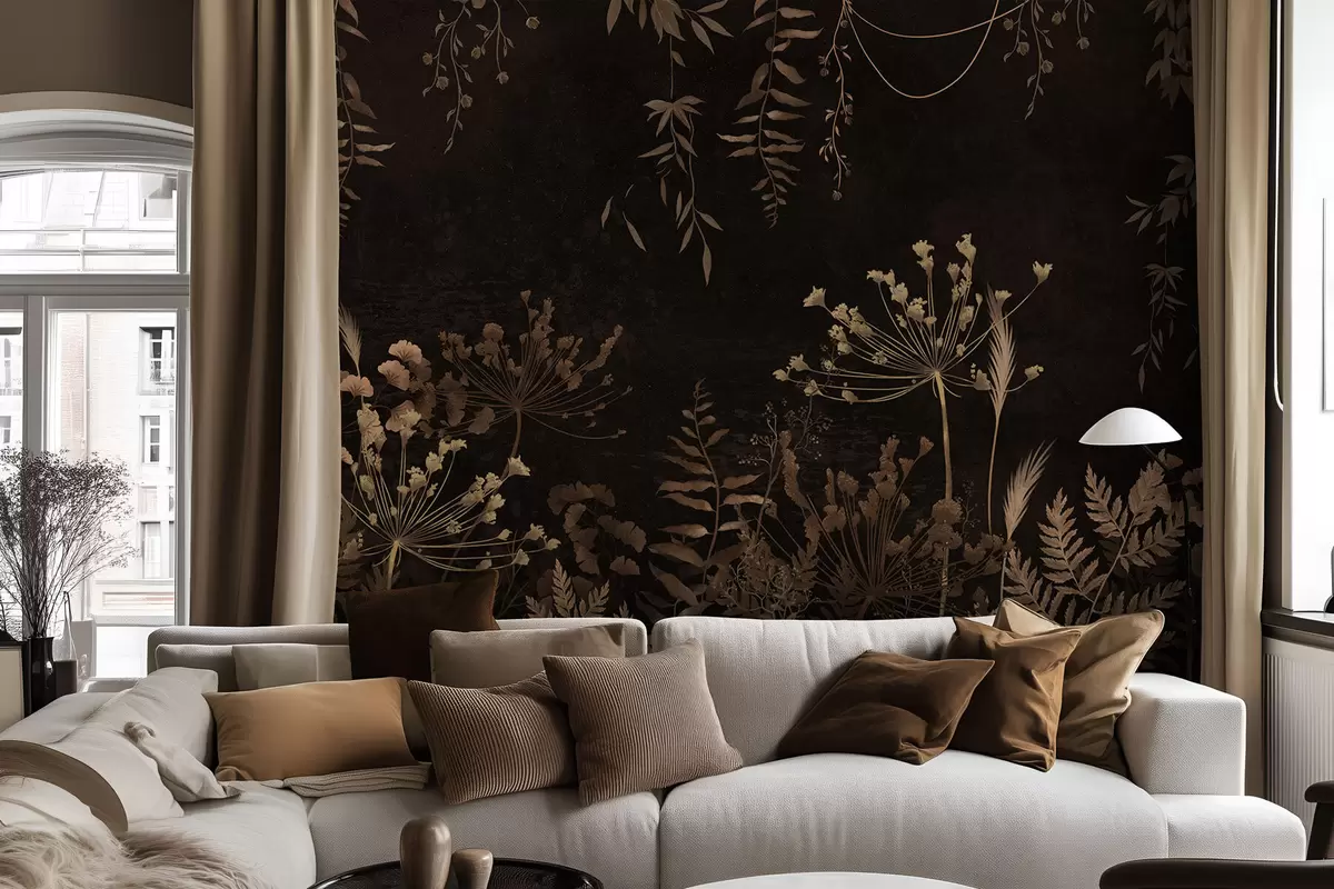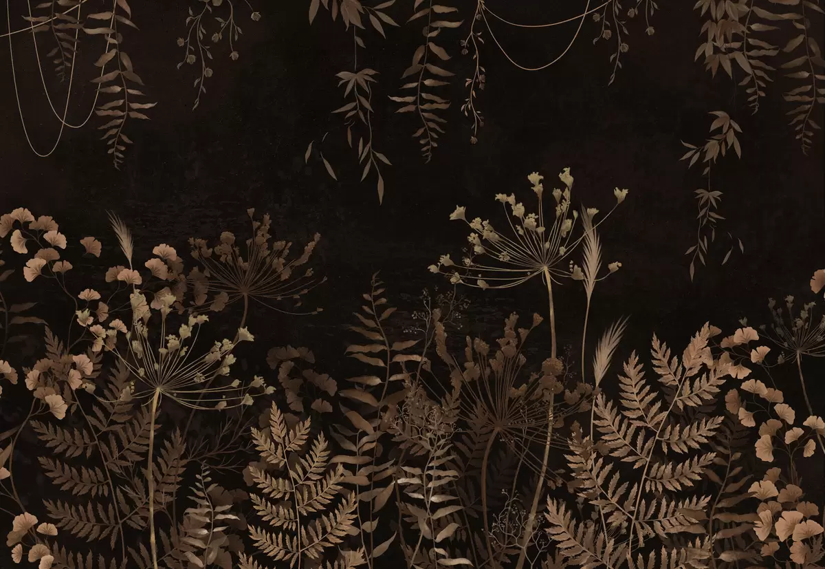 Fototapety Tmavý botanický vzor s kvetmi a trávami Nr. w05092v3