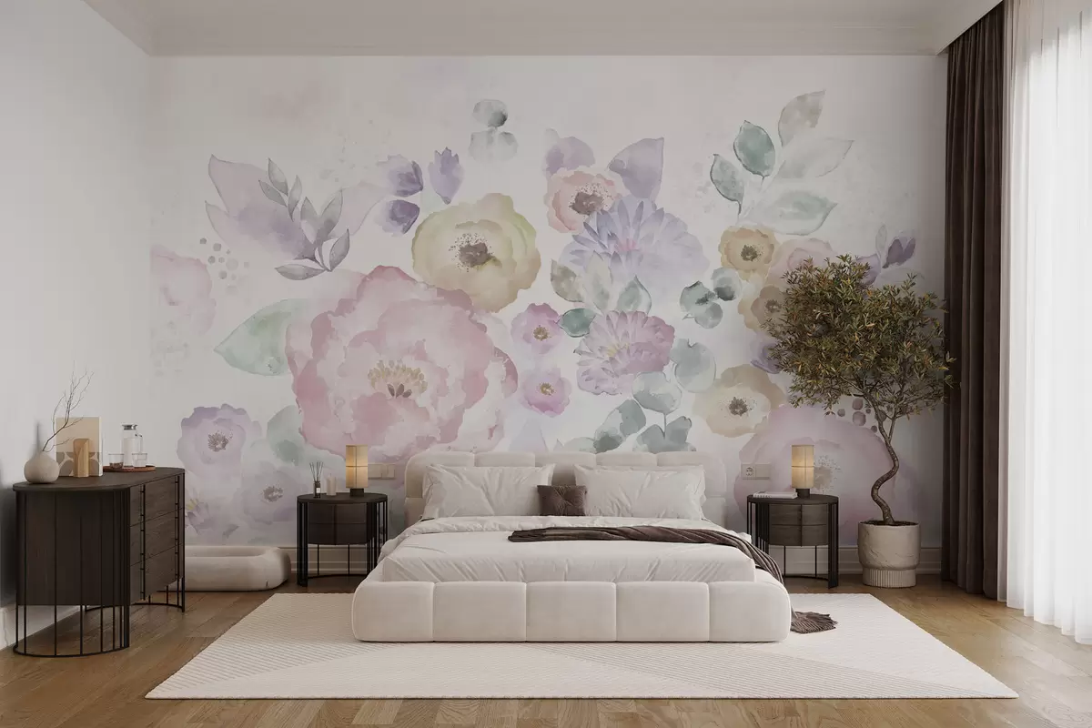 Fototapety Jemná akvarelová kompozícia s kvetmi a listami Nr. w05093