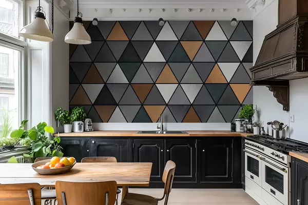 Fototapety Trojuholníkový vzor so sivými a teplými odtieňmi Nr. w05095v1