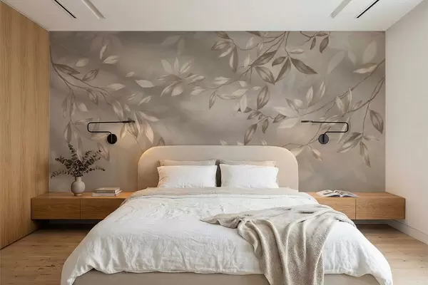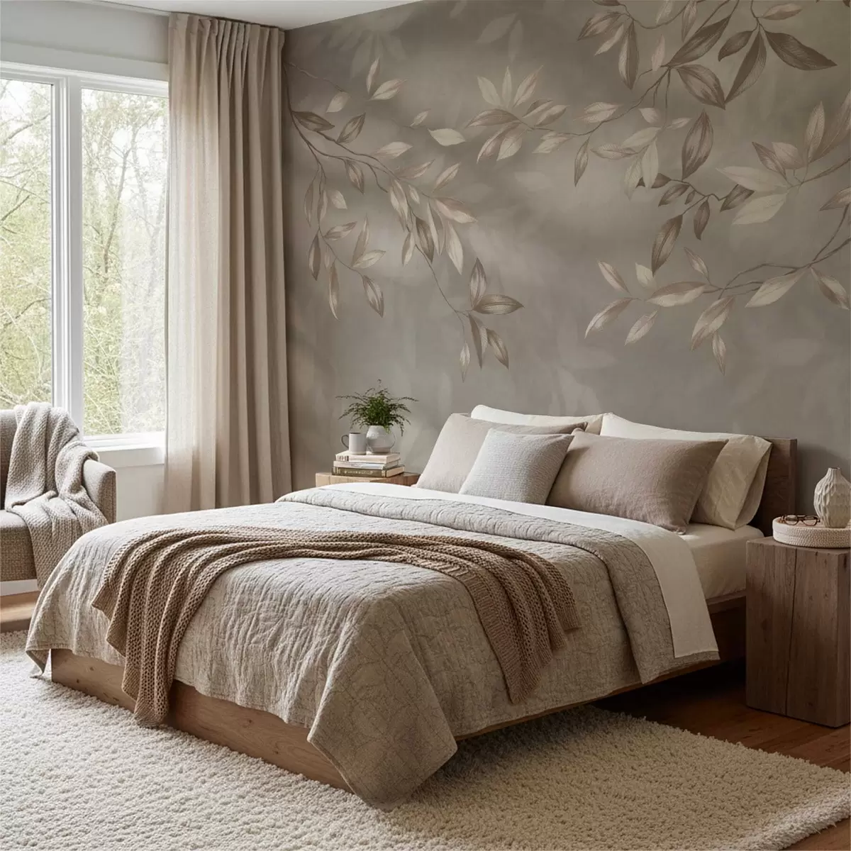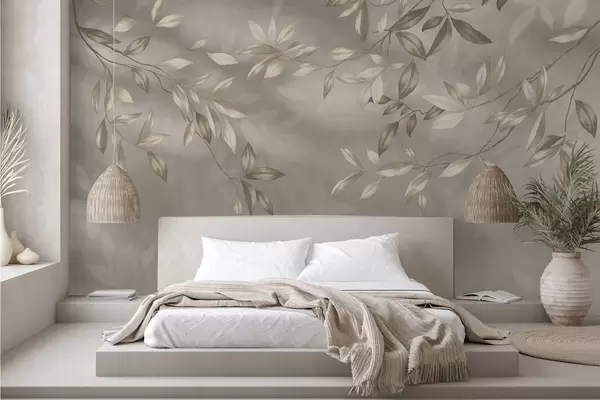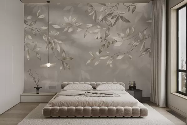 Fototapety Elegantné listnaté vetvy v béžových odtieňoch na svetlom pozadí Nr. w05113