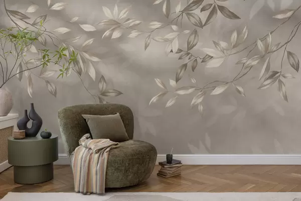 Fototapety Elegantné listnaté vetvy v béžových odtieňoch na svetlom pozadí Nr. w05113