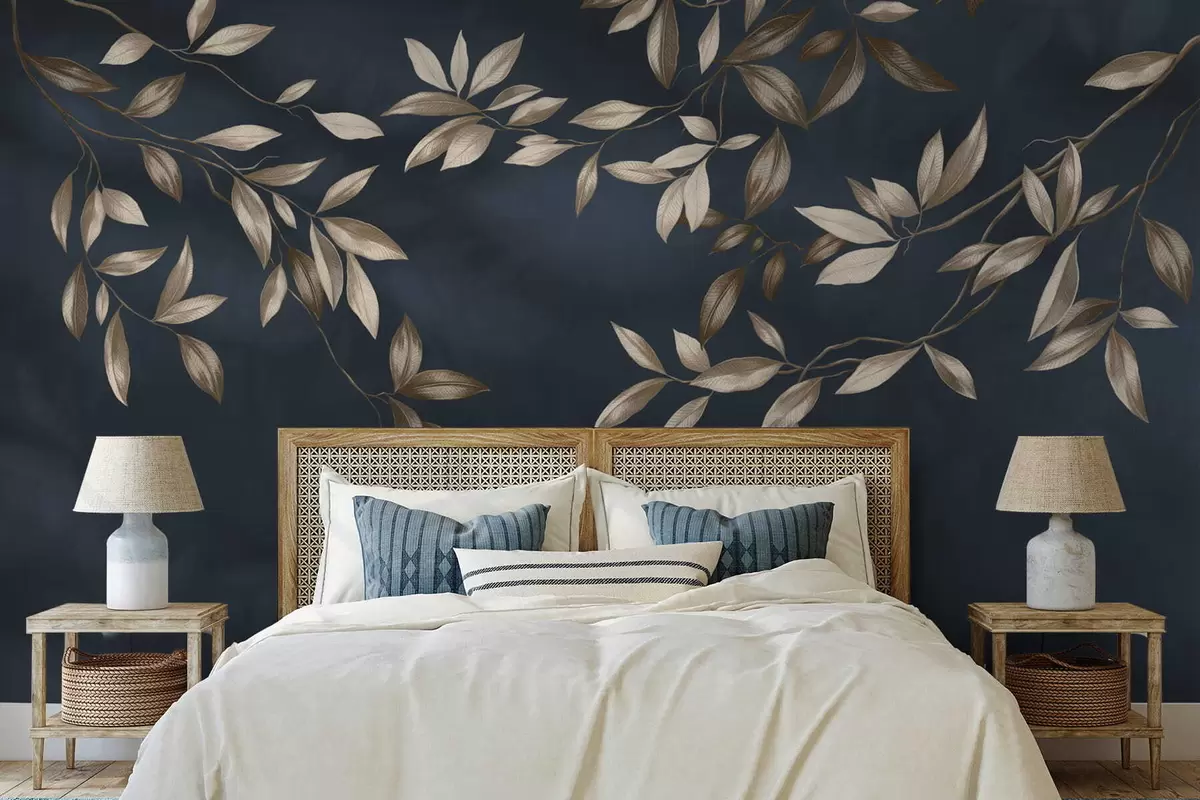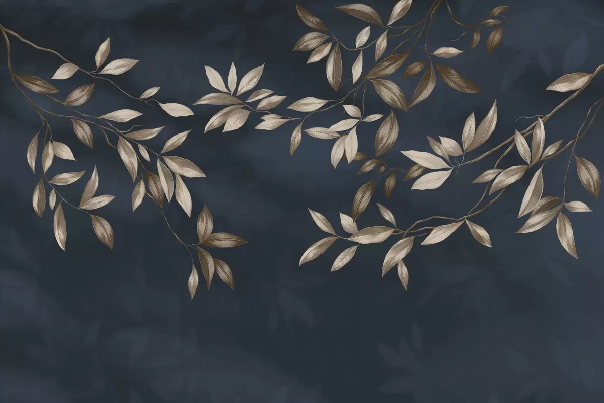 Fototapety Dekoratívne lístnaté vetvy na tmavomodrom pozadí Nr. w05113v1