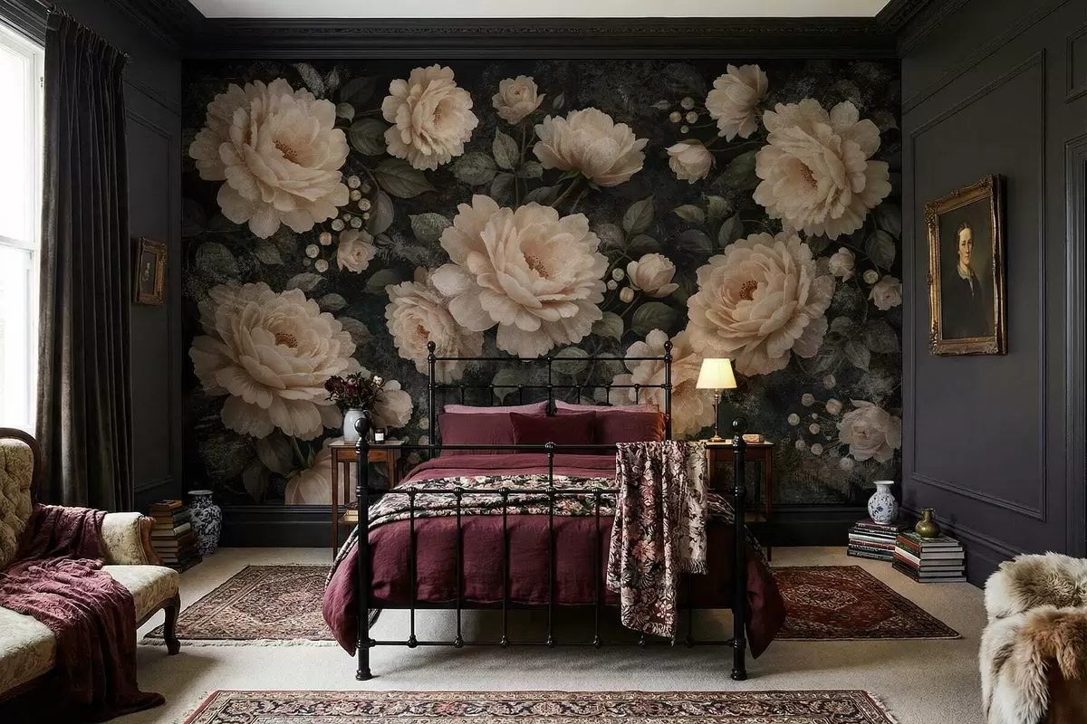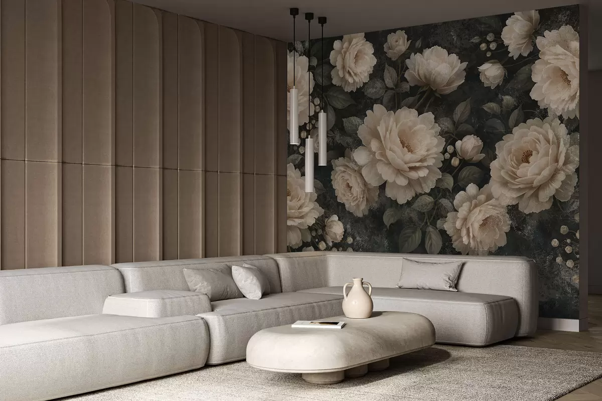 Fototapety Objemné kvety v béžovej palete na tmavom pozadí Nr. w05114