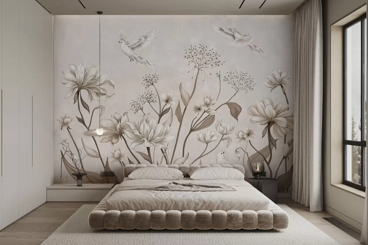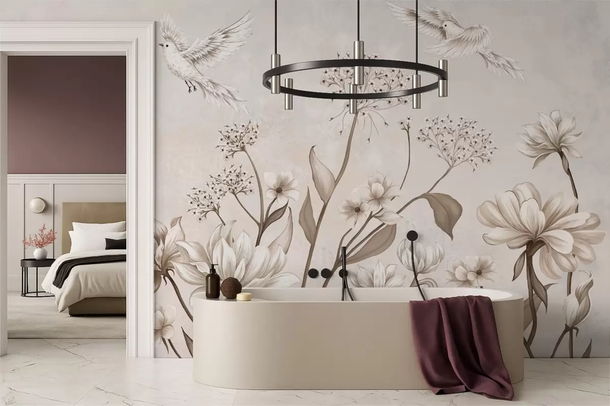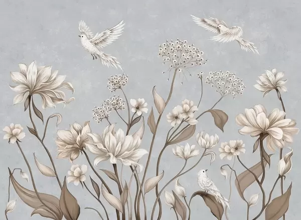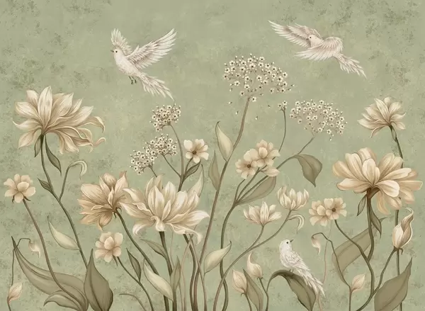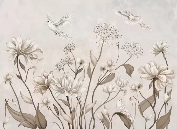Fototapety Svetlé kvety a vtáky na jemnom pozadí Nr. w05118