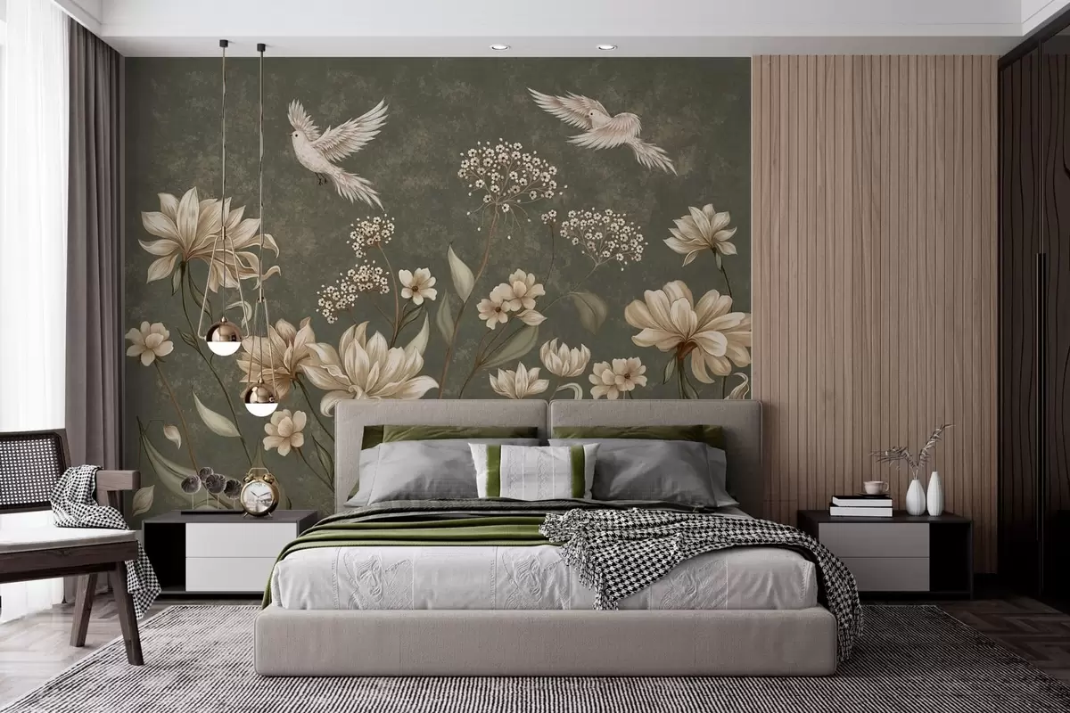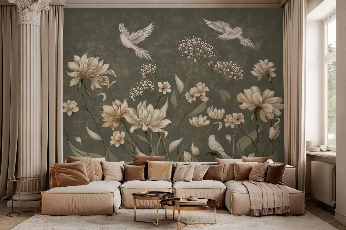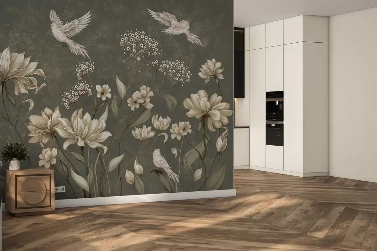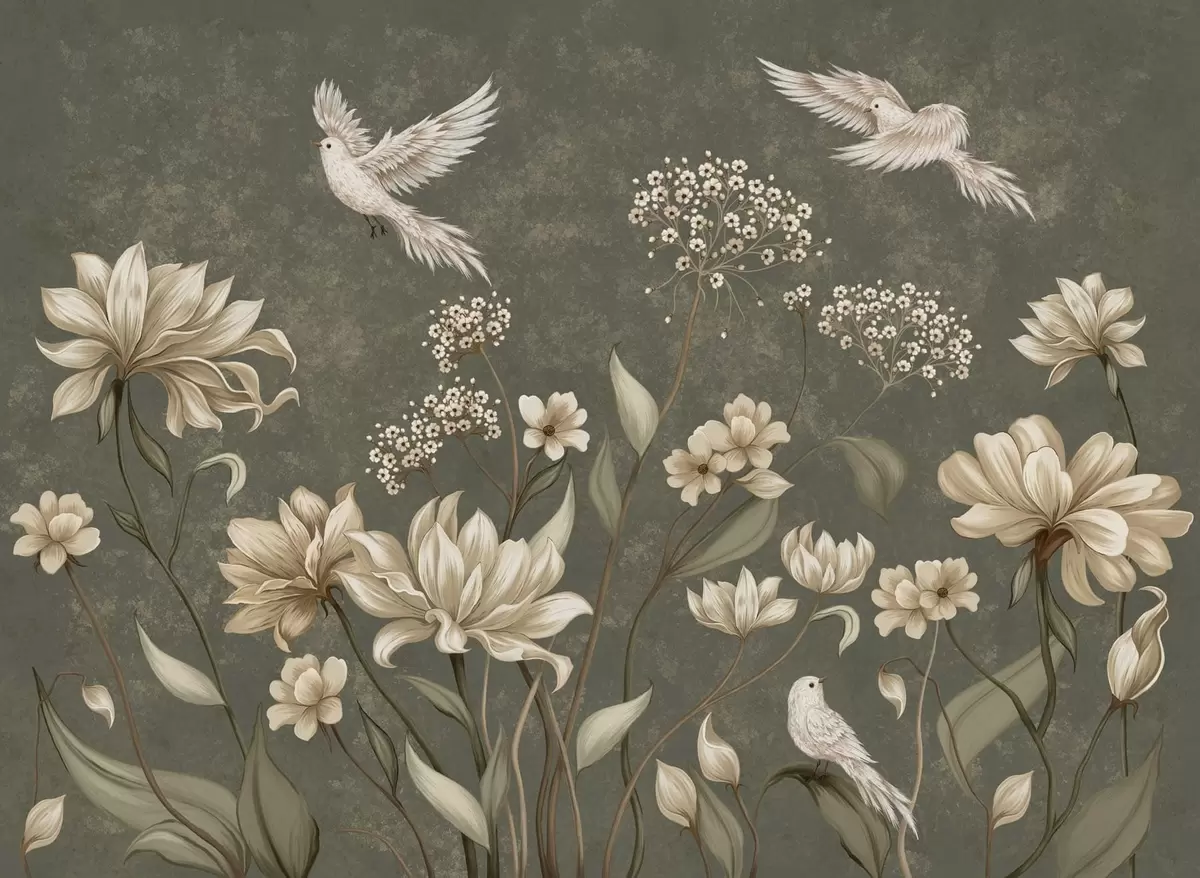 Fototapety Kvety a vtáky na tmavozelenom pozadí Nr. w05118v3