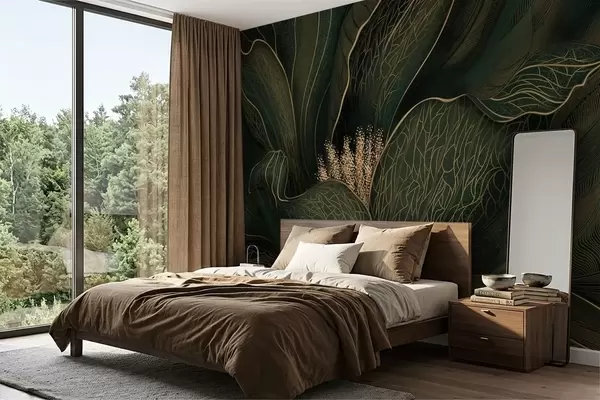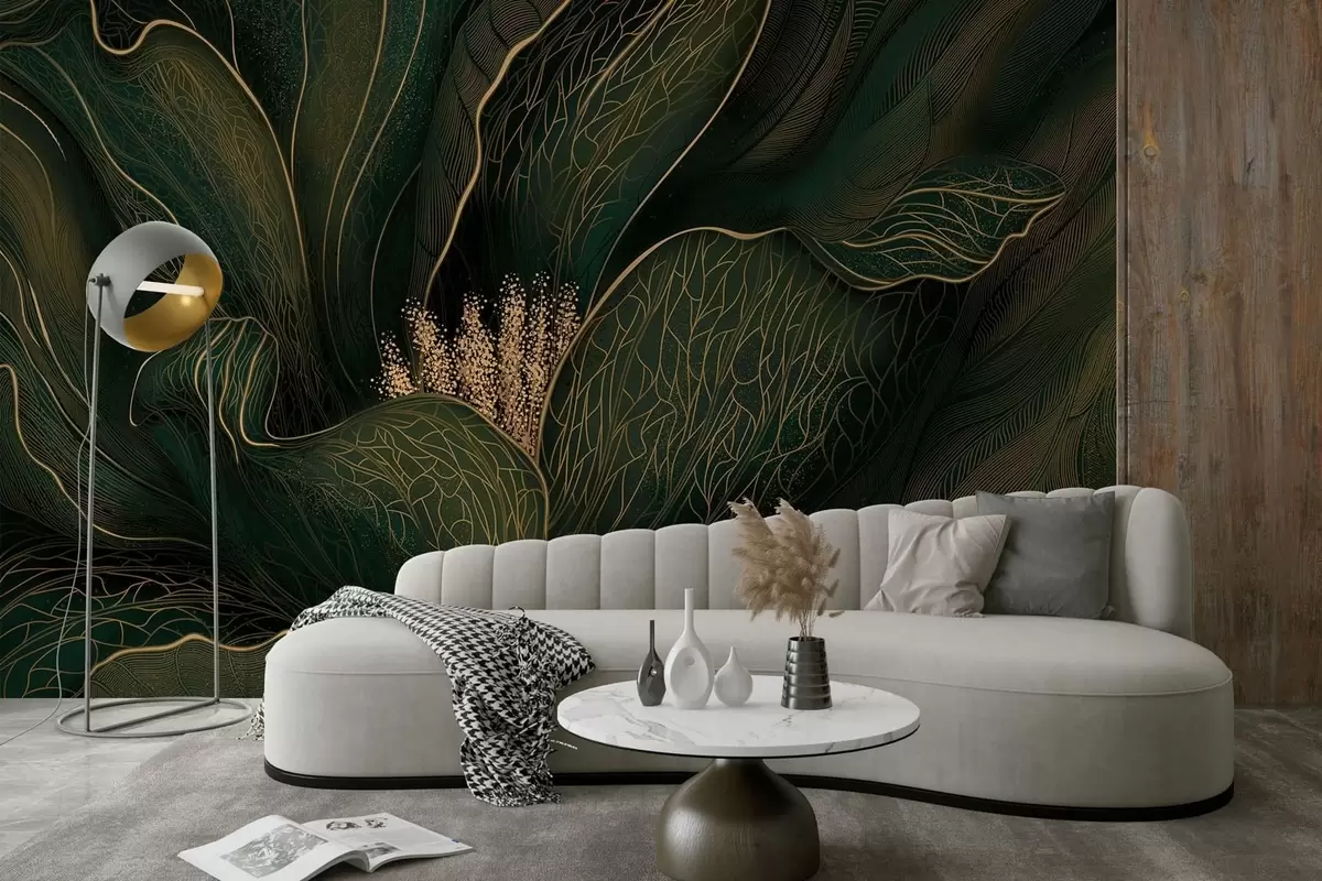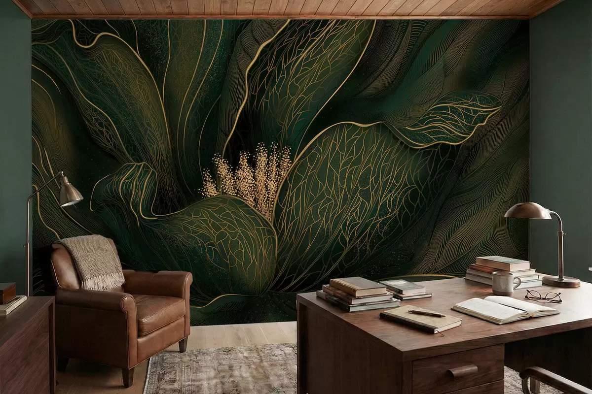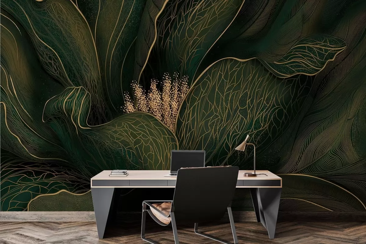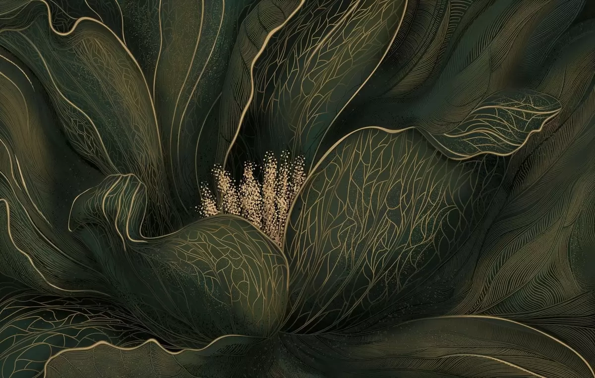 Fototapety Tmavozelená abstraktná kvetina s jemnými líniovými detailmi Nr. w05119v1