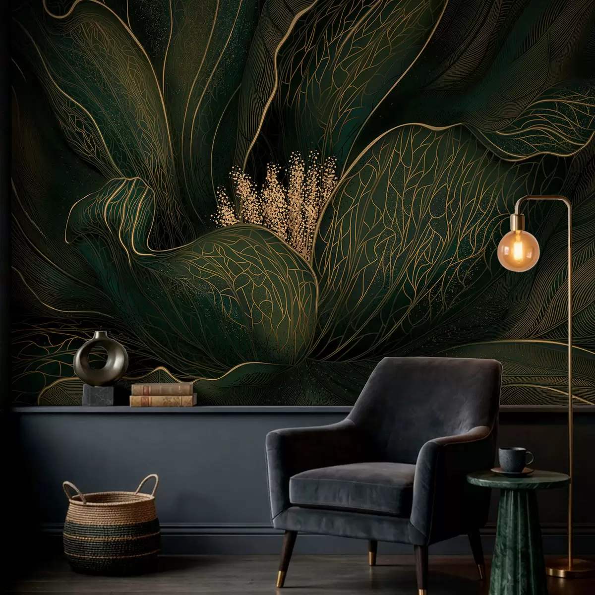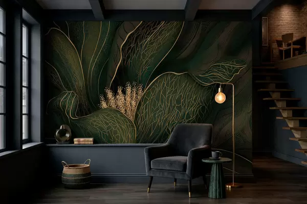 Fototapety Tmavozelená abstraktná kvetina s jemnými líniovými detailmi Nr. w05119v1