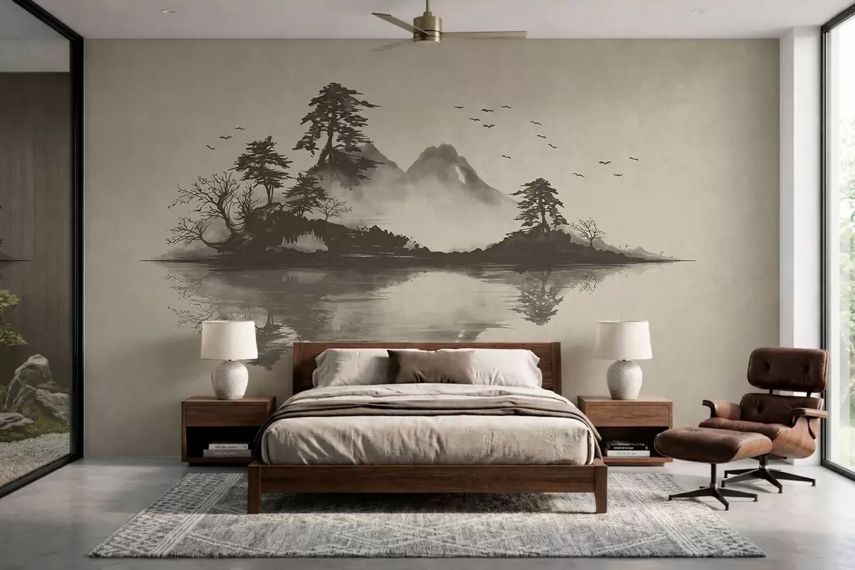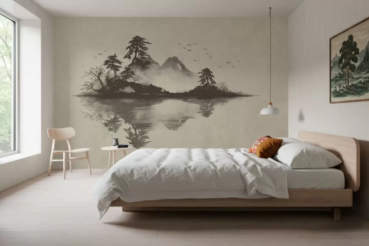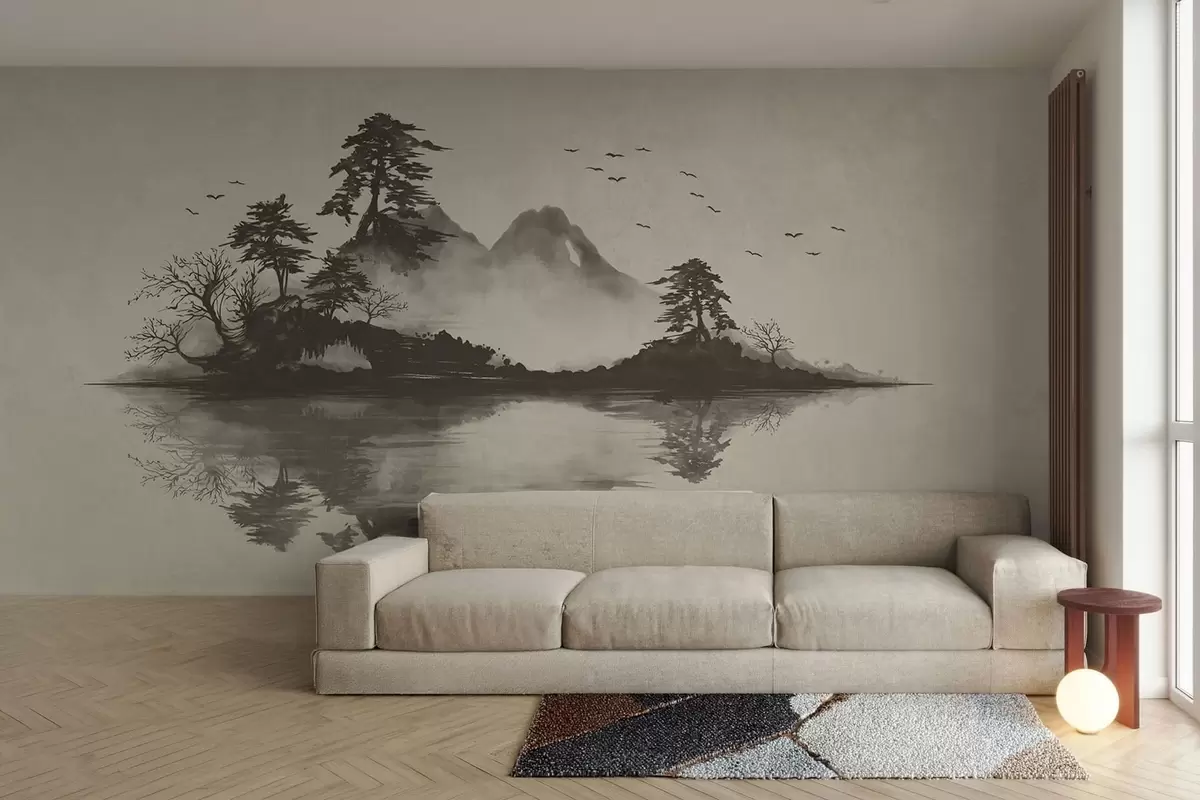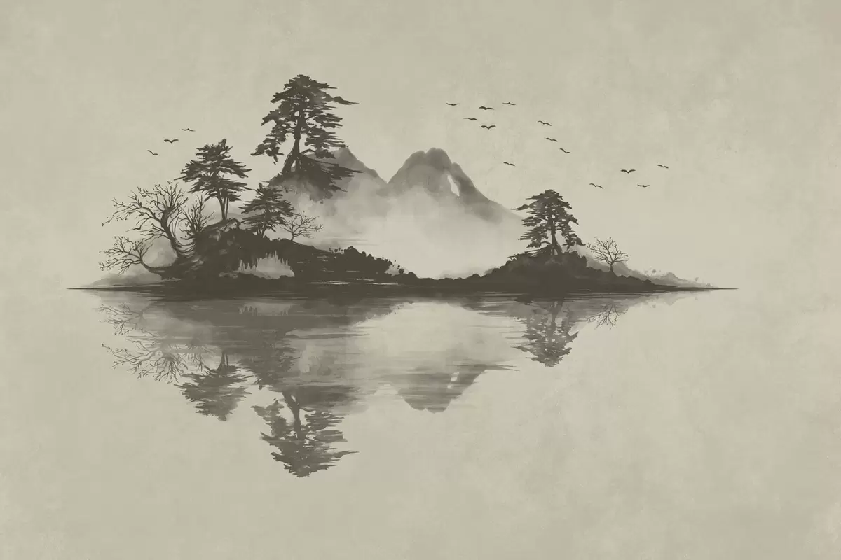 Fototapety Horská krajina v štýle sumi-e v jemných sivých odtieňoch Nr. w05124v1
