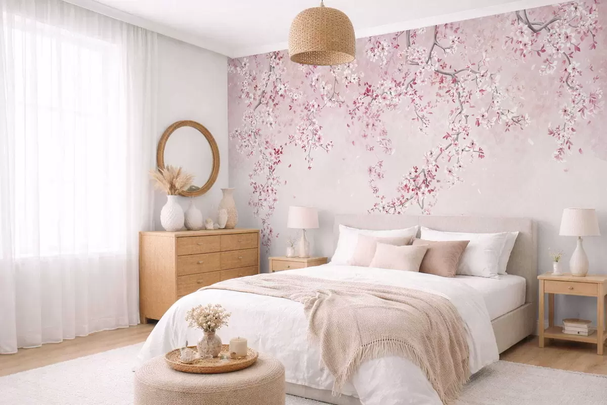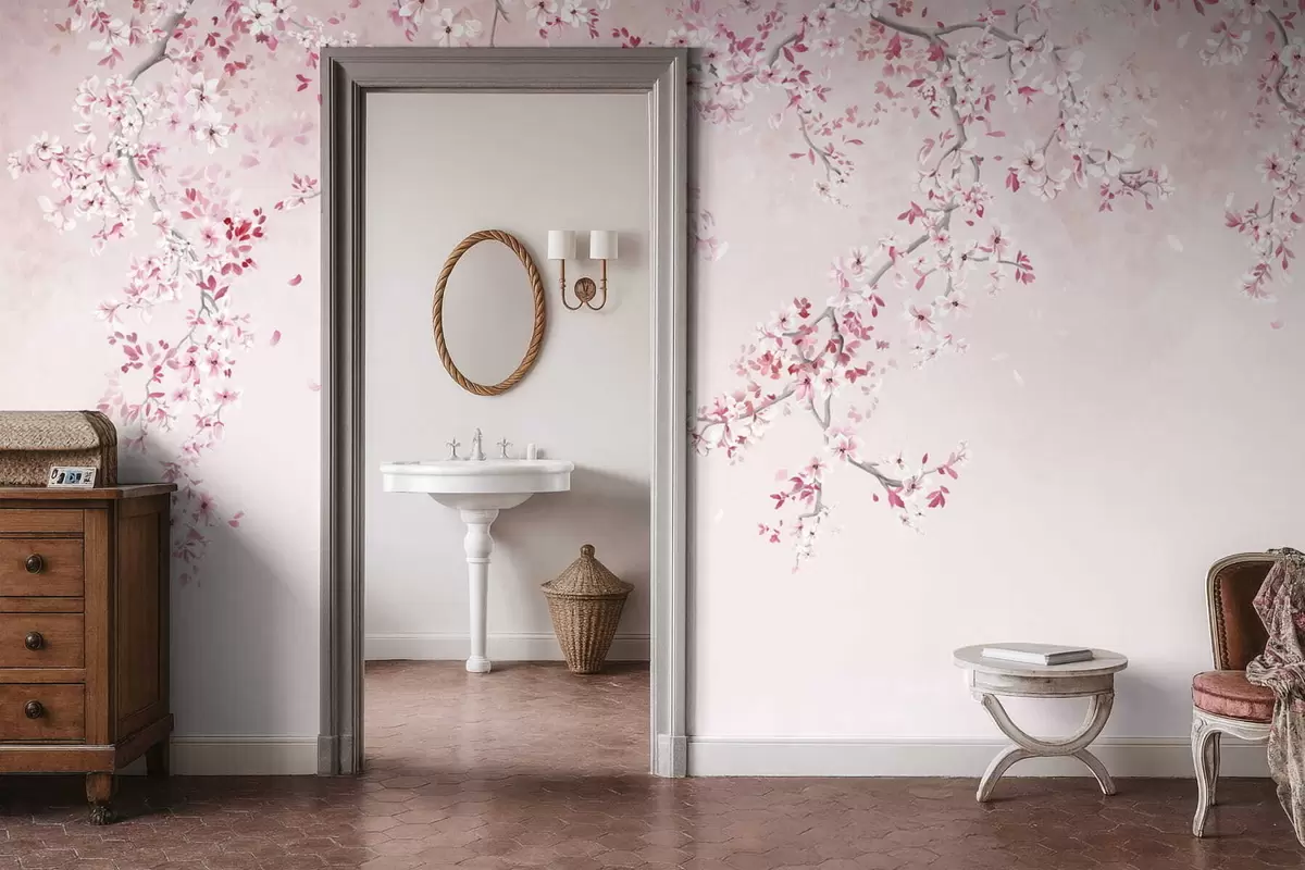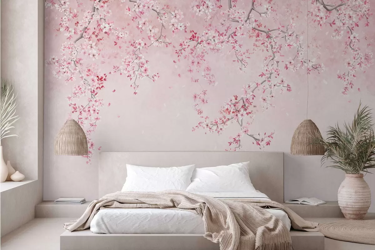 Fototapety Vetvy s ružovými kvetmi na jemnom pastelovom pozadí Nr. w05129v1