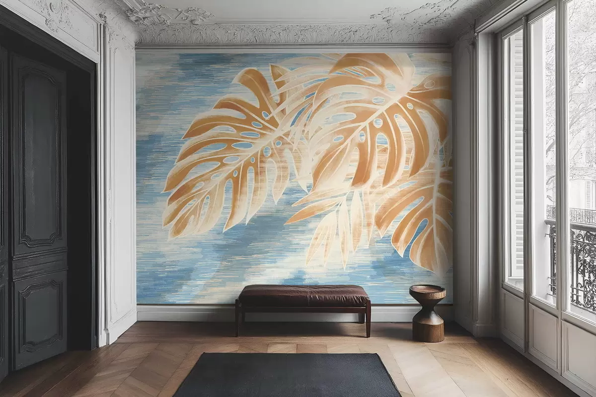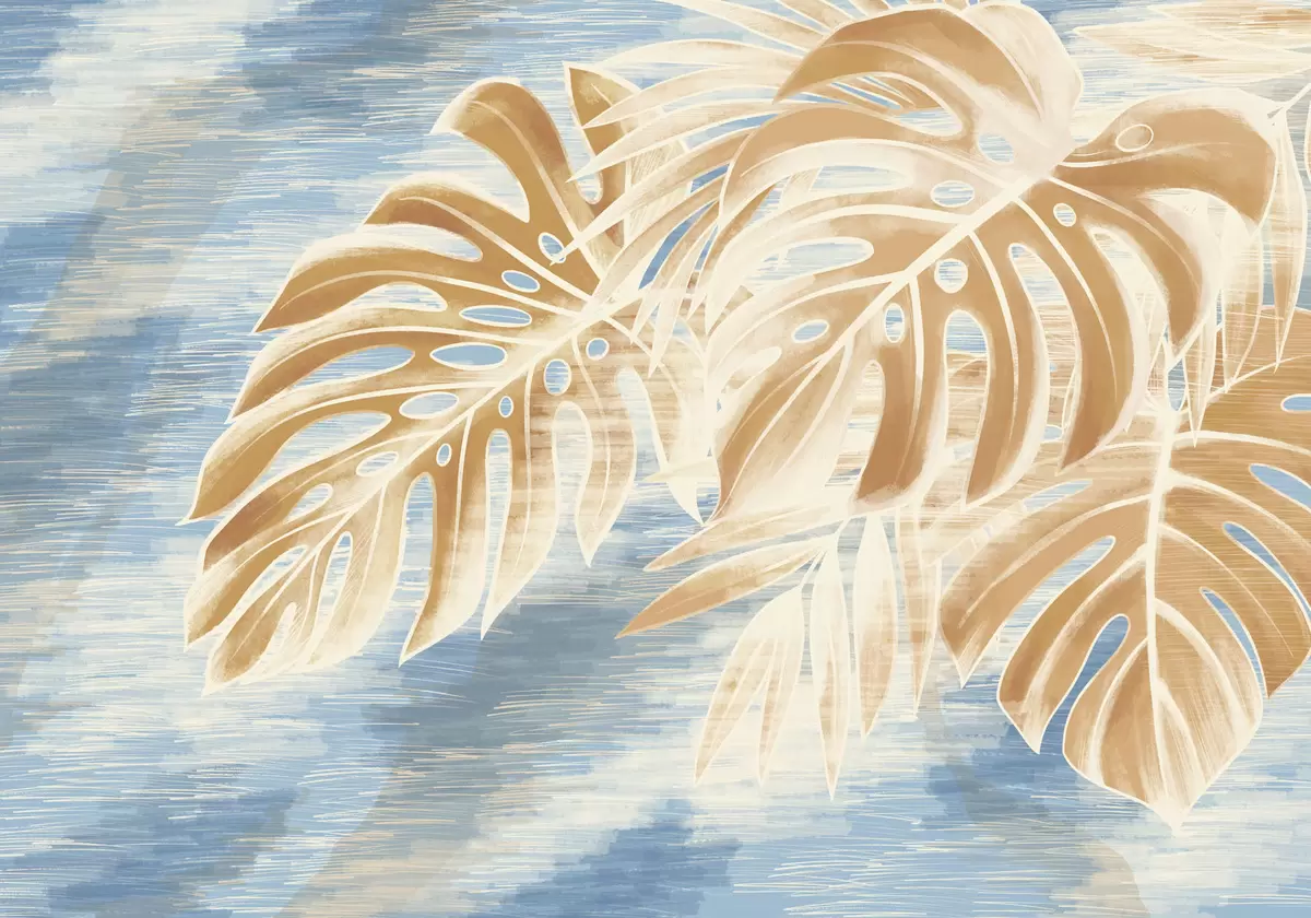 Fototapety Listy v svetlých pieskových odtieňoch na modrom pozadí Nr. w05130v1