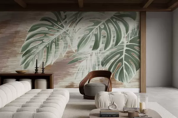 Fototapety Zelené listy na teplom textúrovanom abstraktnom podklade Nr. w05130v3