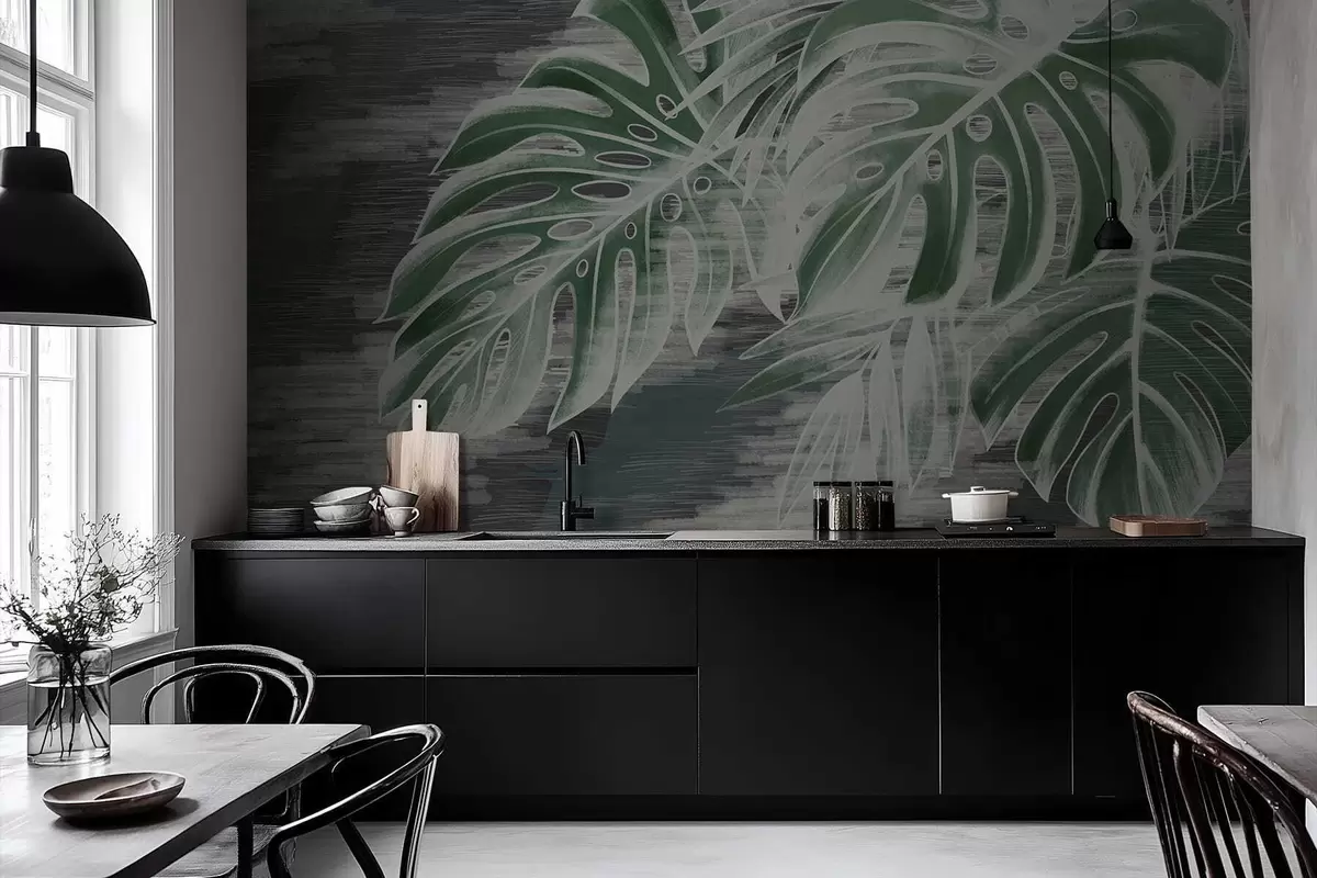 Fototapety Tmavozelené listy na textúrovanom tmavom pozadí Nr. w05130v4