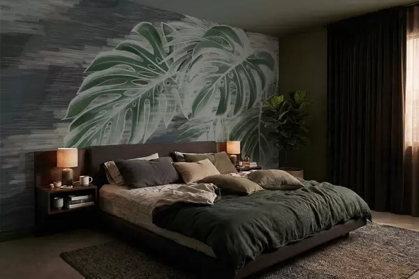 Fototapety Tmavozelené listy na textúrovanom tmavom pozadí Nr. w05130v4