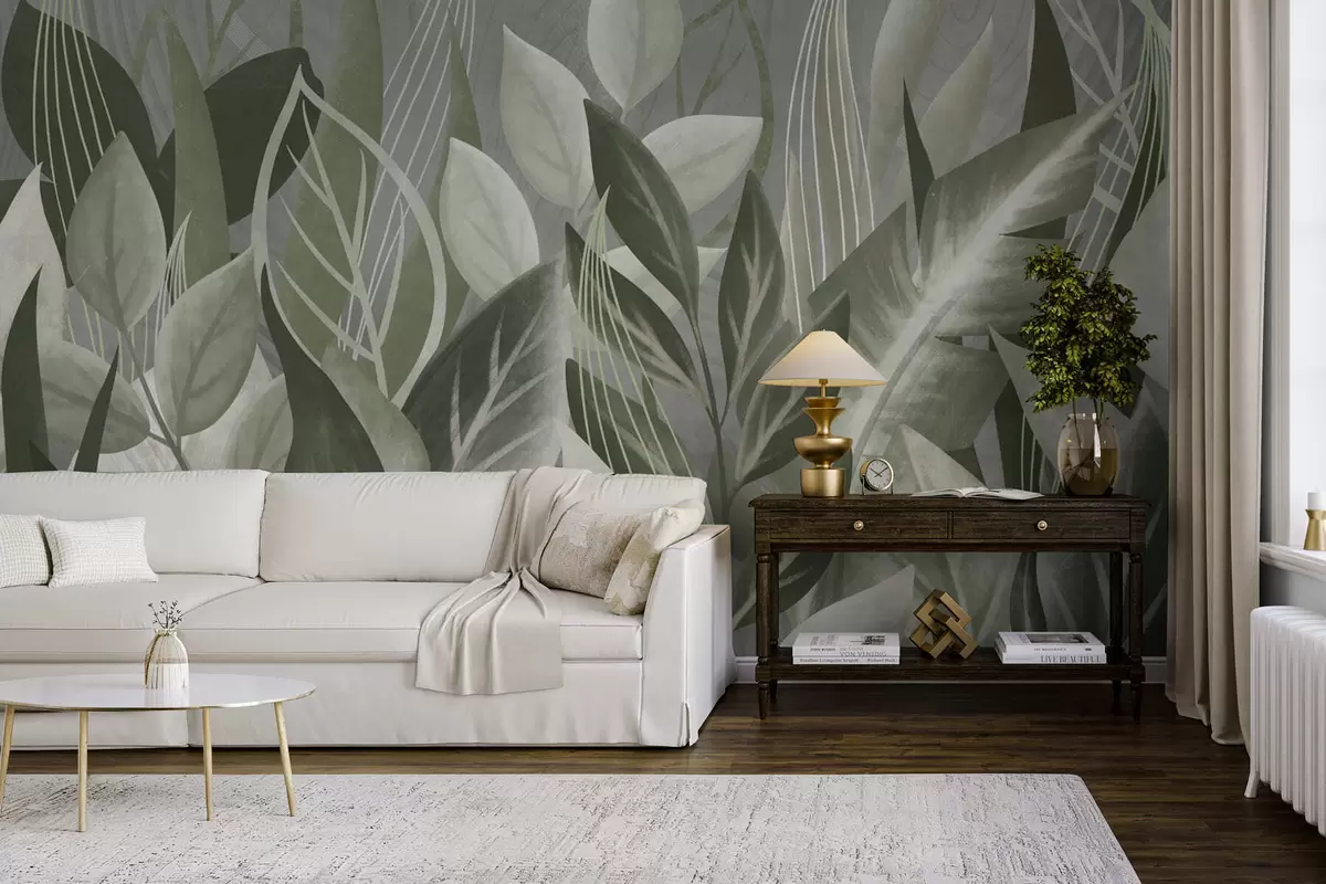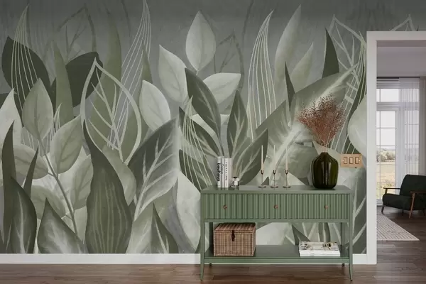 Fototapety Listy s výrazným vzorom v sivozelených odtieňoch Nr. w05148v1