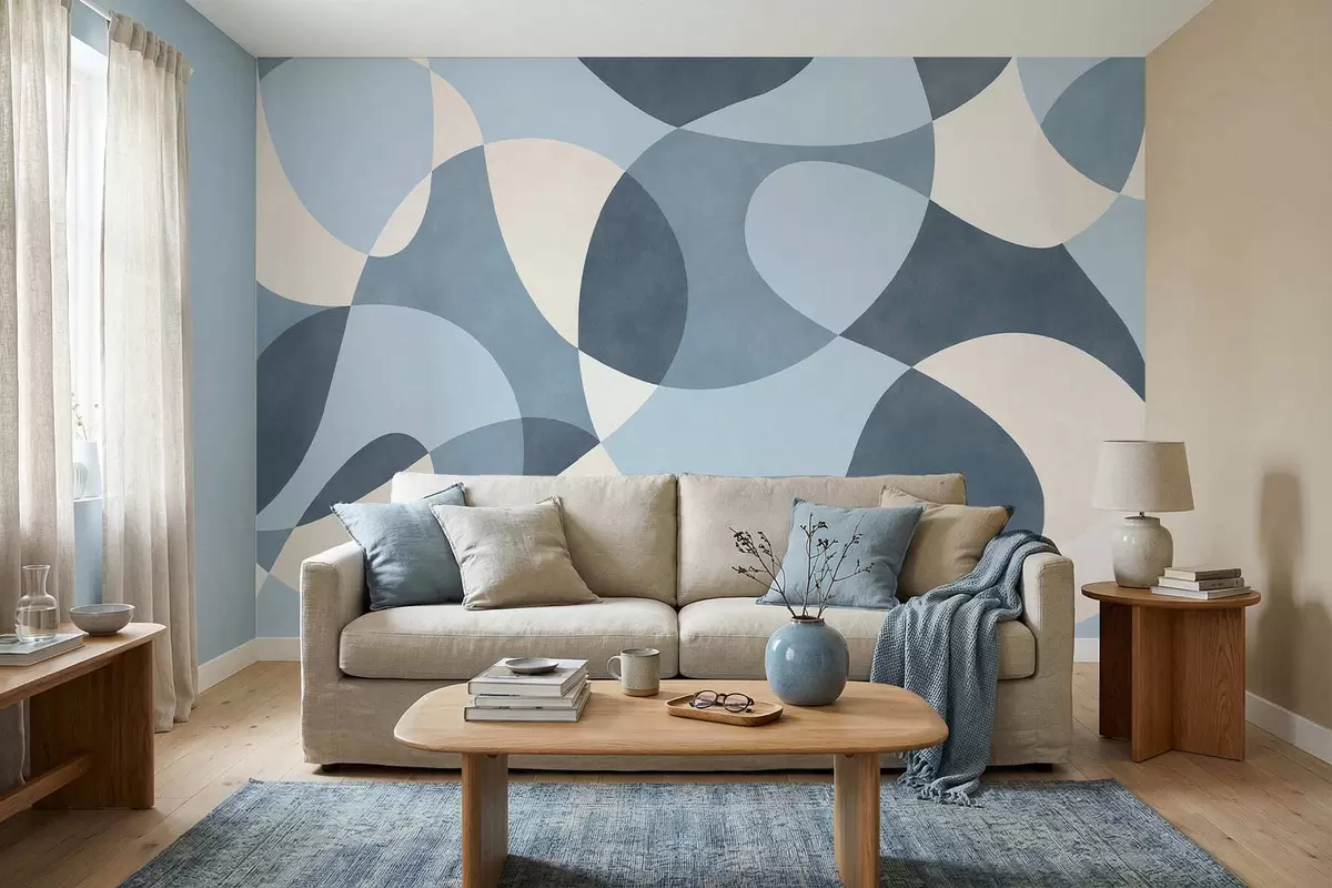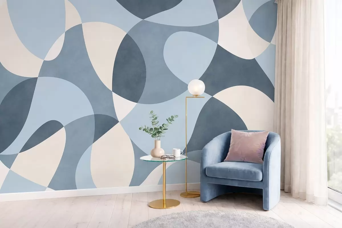 Fototapety Abstraktný vzor so zaoblenými tvarmi v modrých odtieňoch Nr. w05149v2
