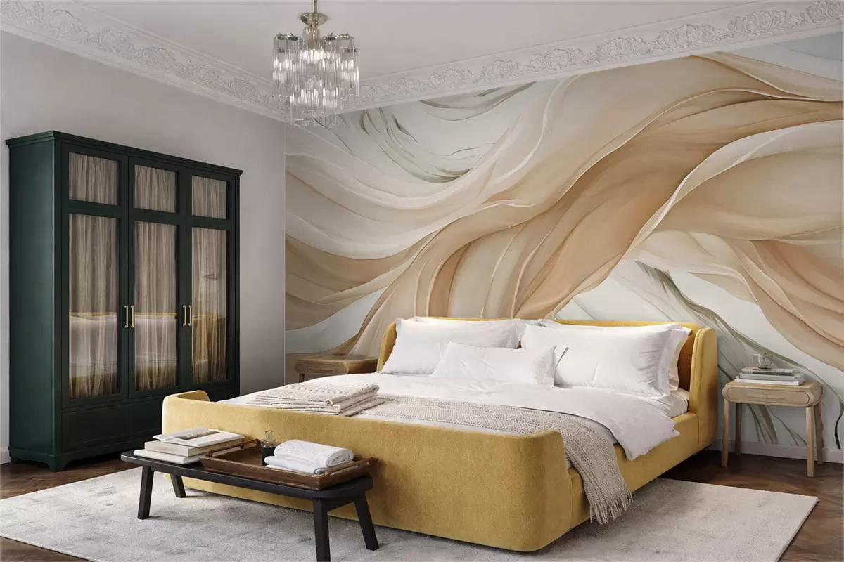Fototapety Vlniaca sa béžová látka Nr. w05152