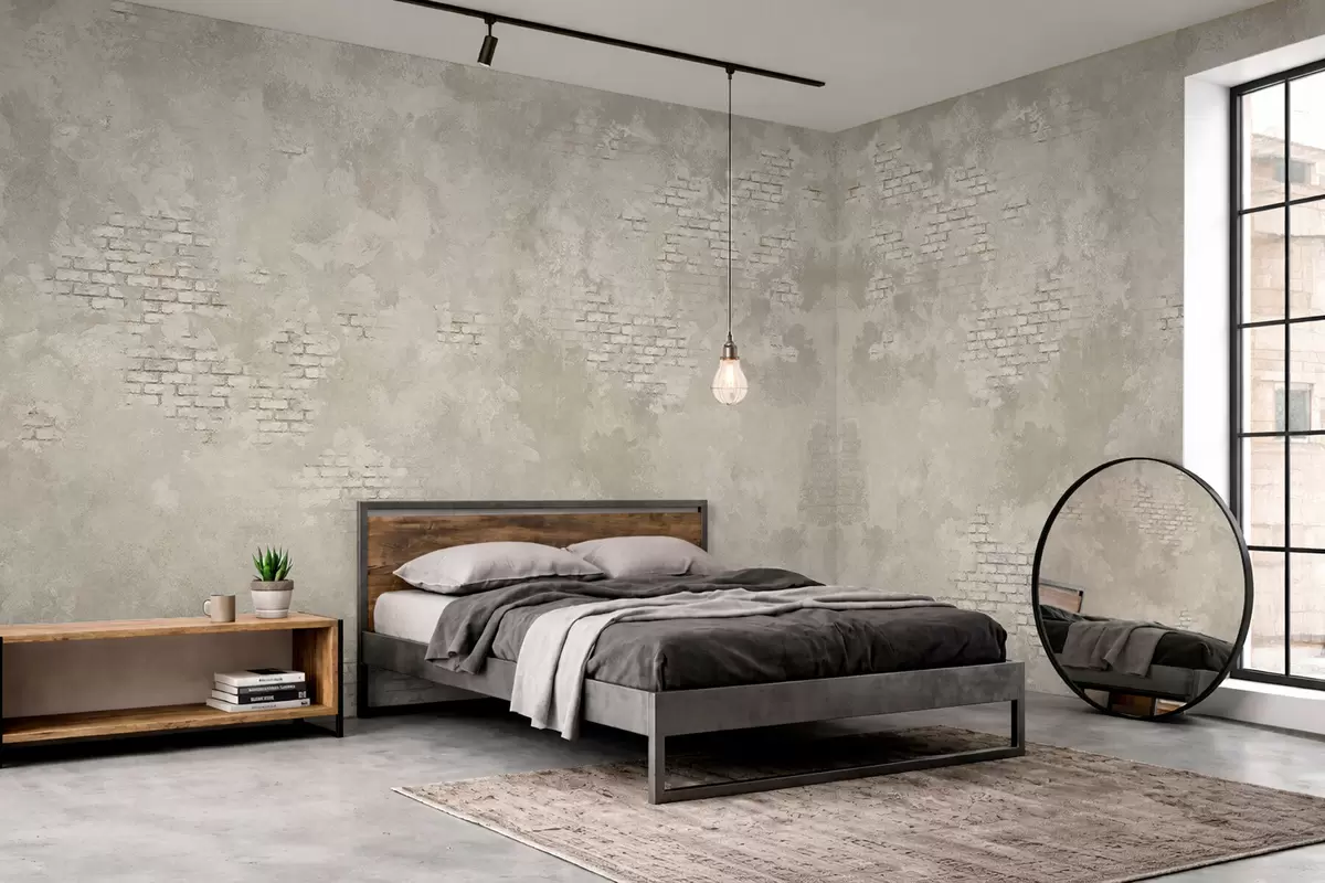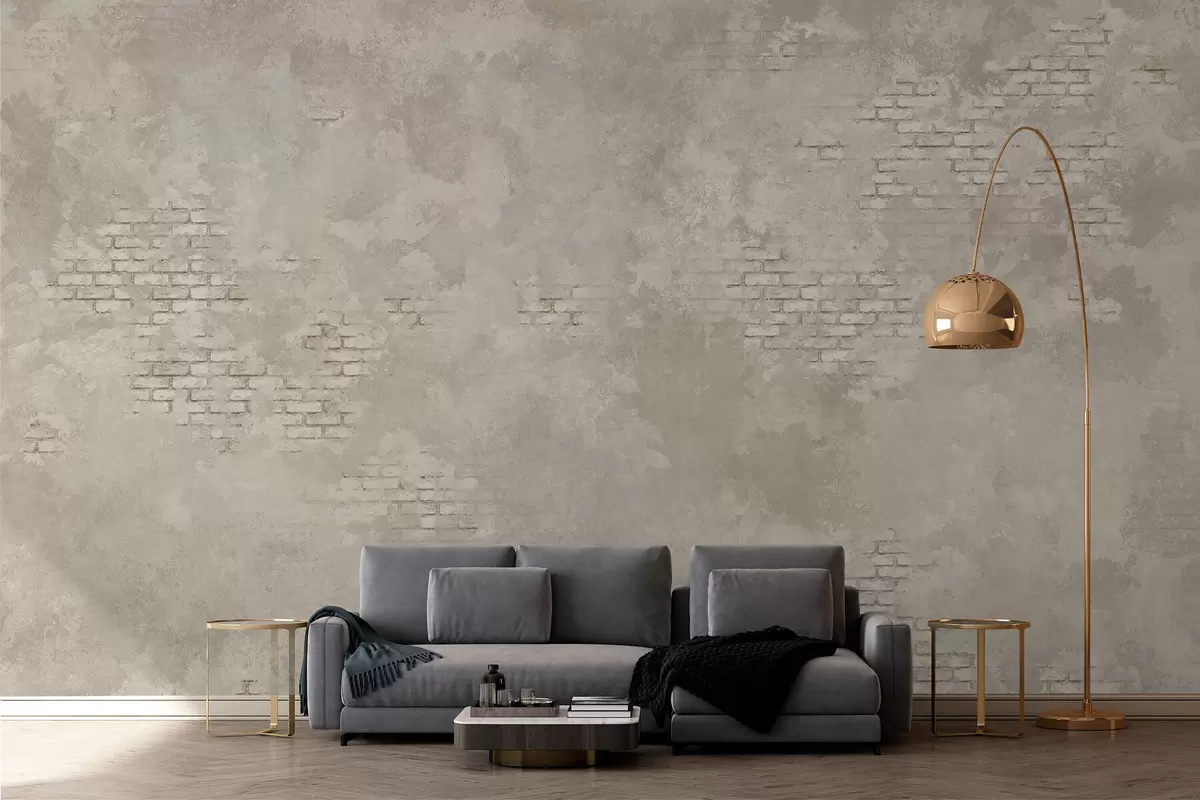 Fototapety Svetlá omietka v štýle grunge s odkrytými úsekmi tehál Nr. w05161v1