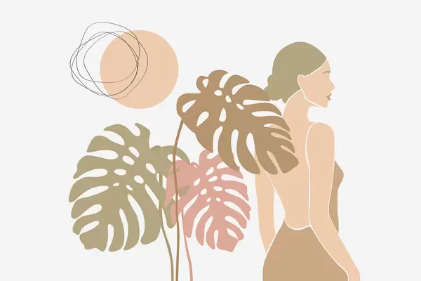 Fototapety Silueta ženy v blízkosti tropických listov Nr. w05192