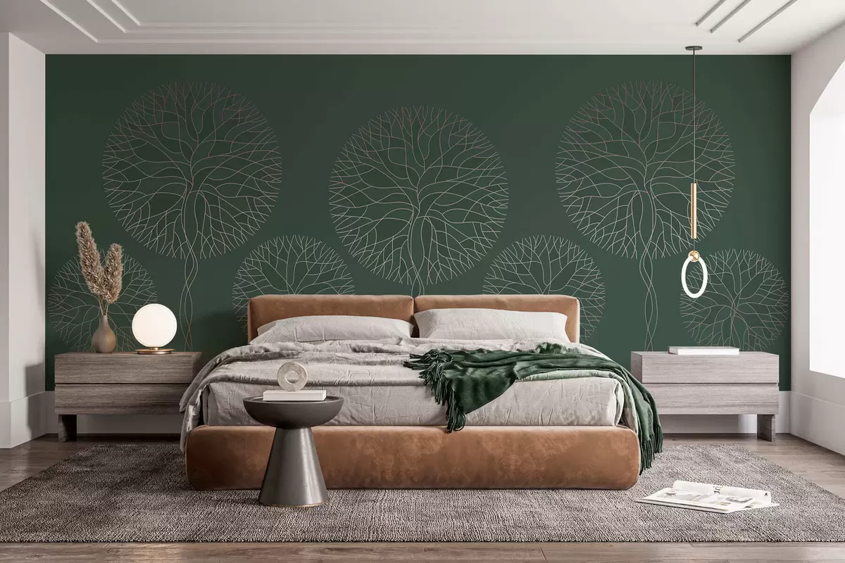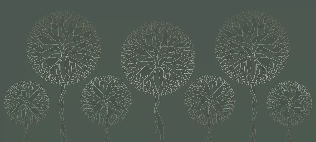 Fototapety Fantazijné lineárne stromy s bujnými korunami v elegantných tmavozelených odtieňoch Nr. w05213v2