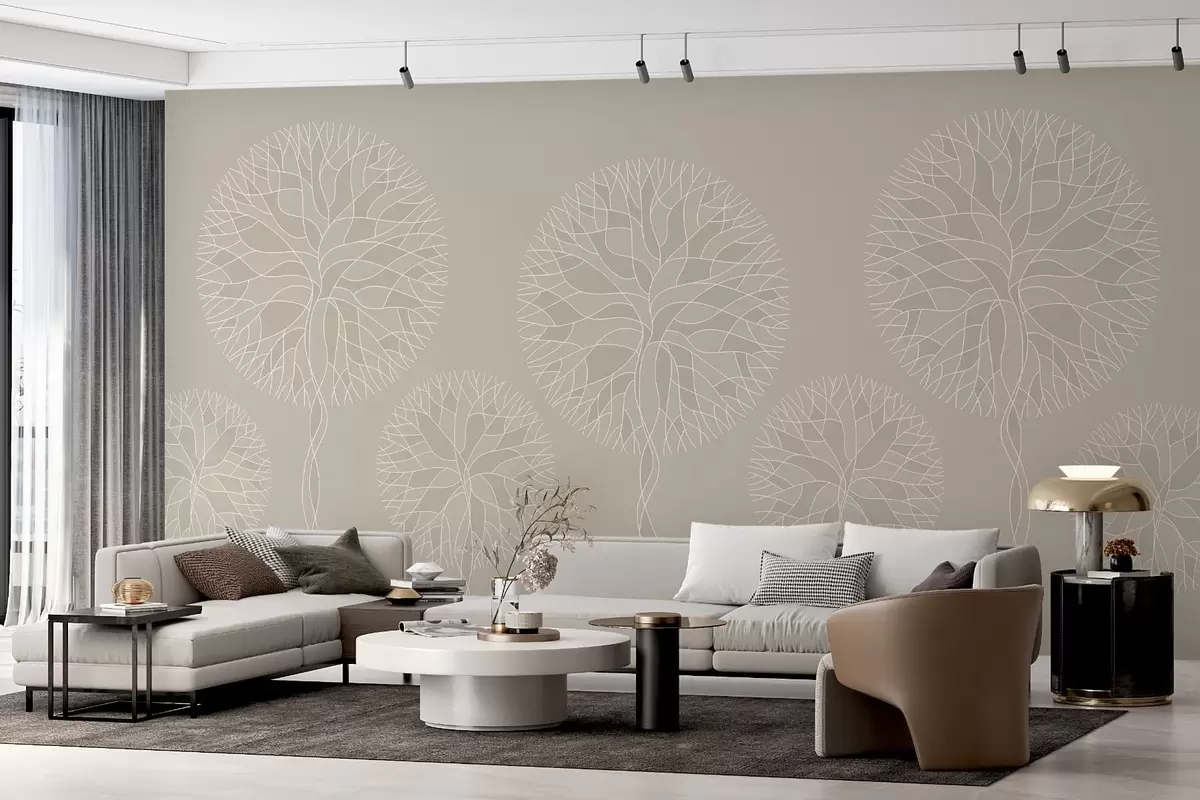 Fototapety Fantazijné lineárne stromy s bujnými korunami v béžových odtieňoch Nr. w05213v3