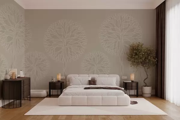 Fototapety Fantazijné lineárne stromy s bujnými korunami v béžových odtieňoch Nr. w05213v3