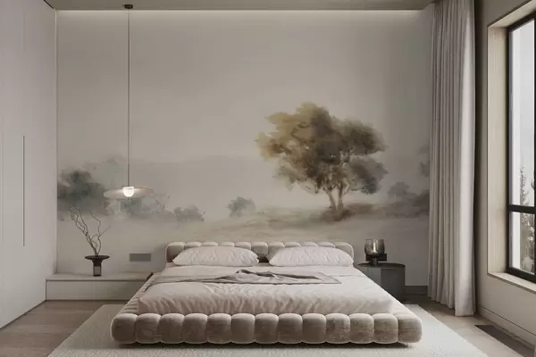 Fototapety Minimalistická krajina s osamelým stromom v hmle Nr. w05223